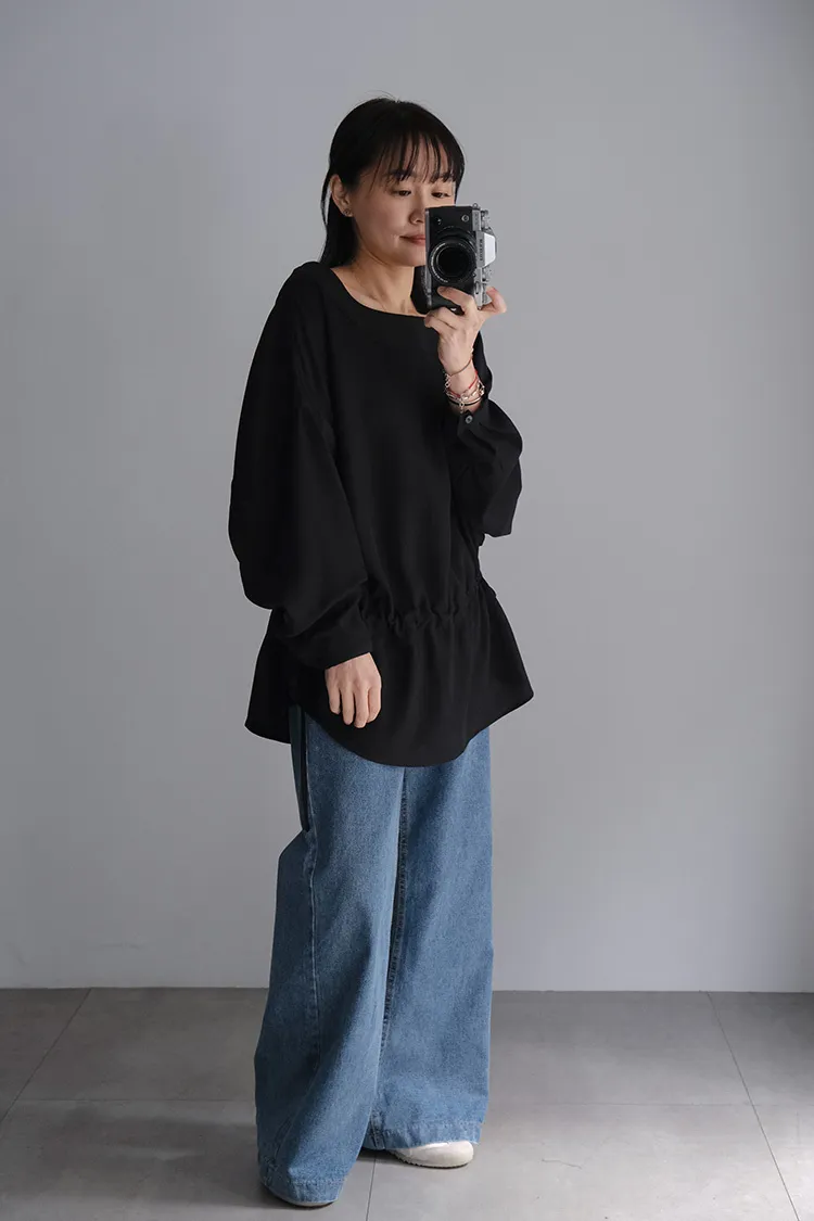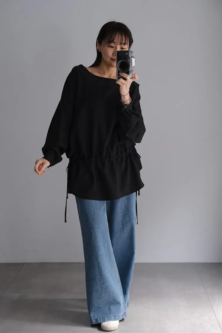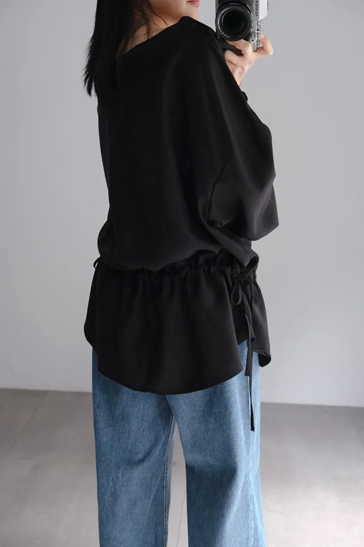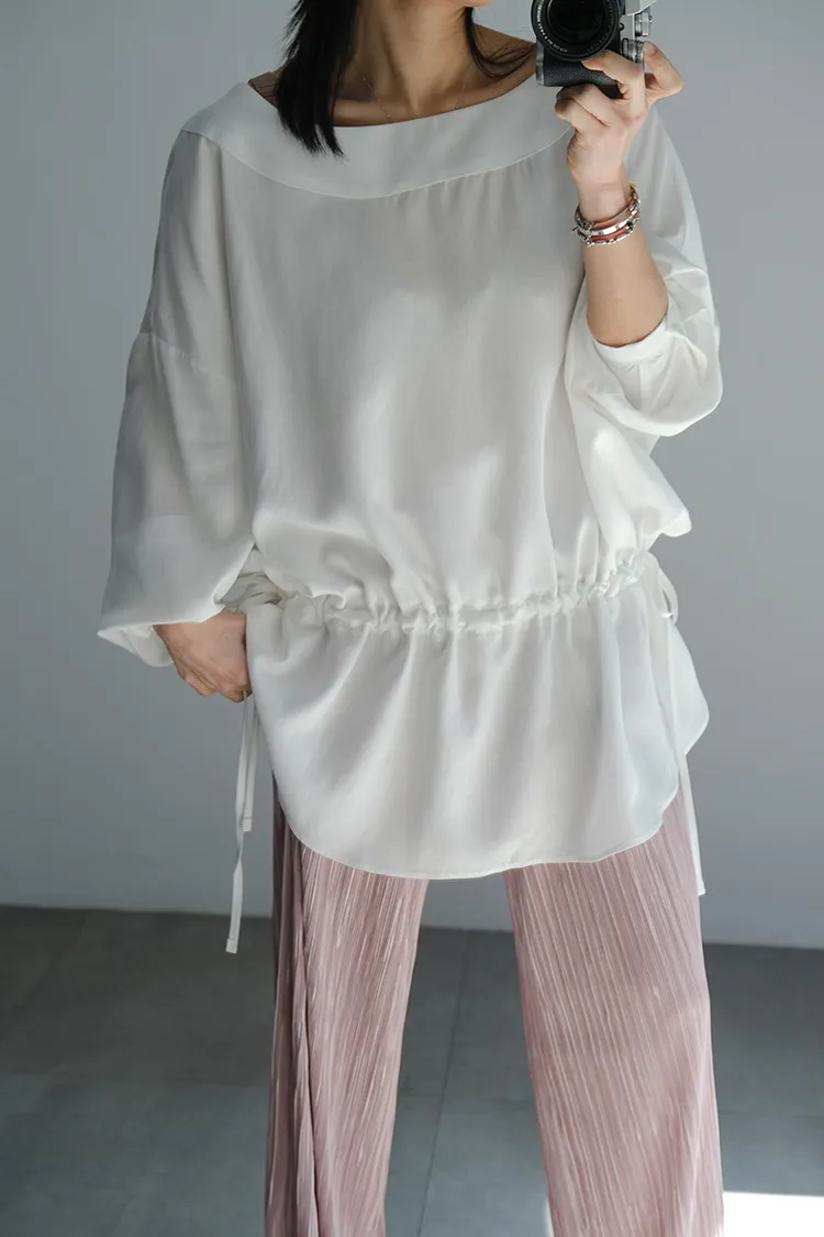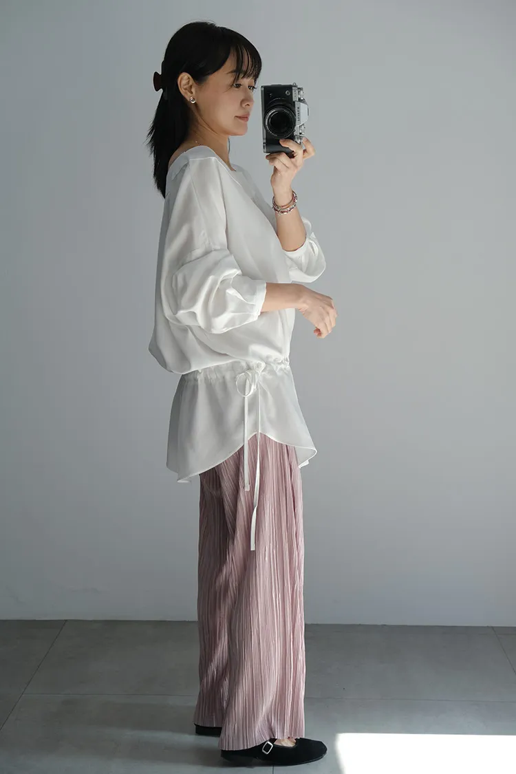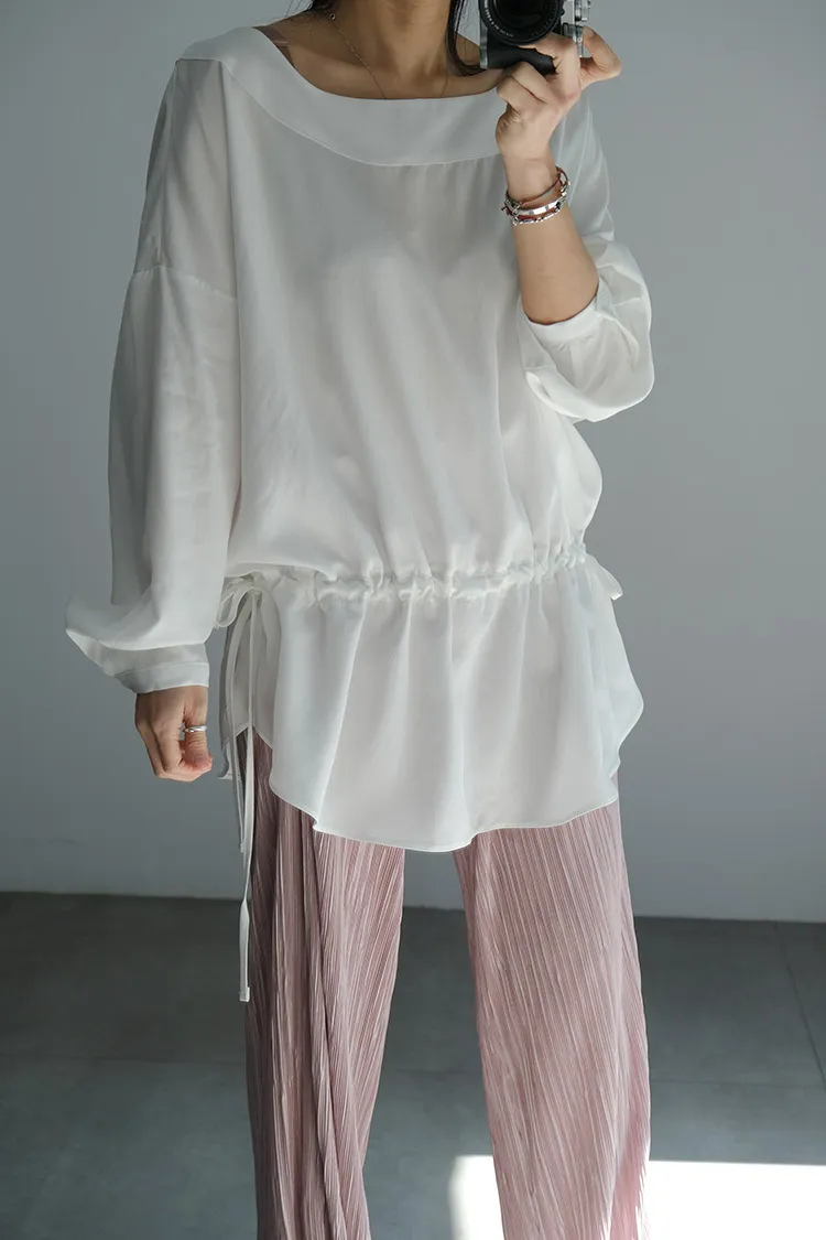 [特點] 薄款雪紡面料,寬鬆版型剪裁,附綁帶。