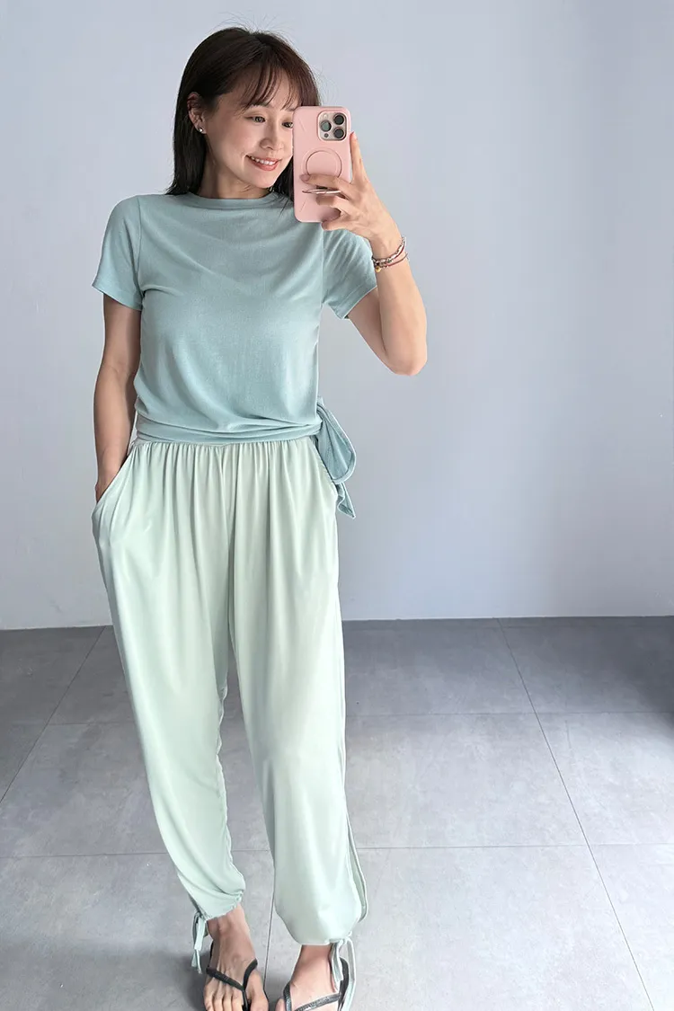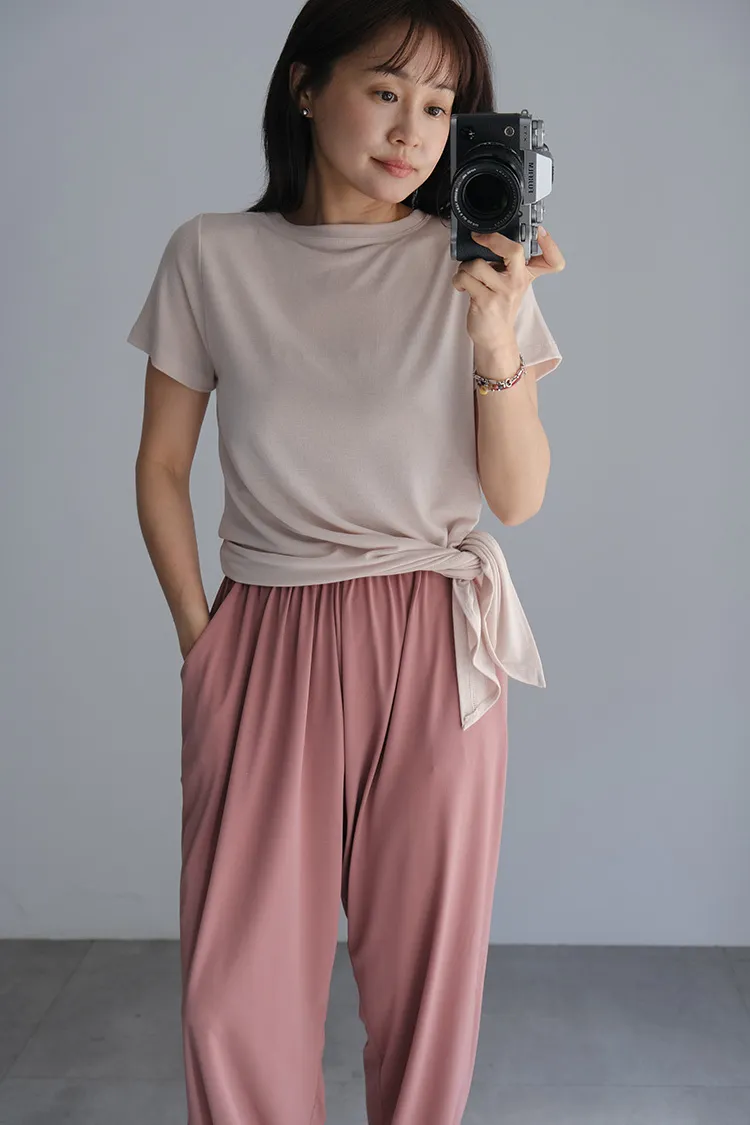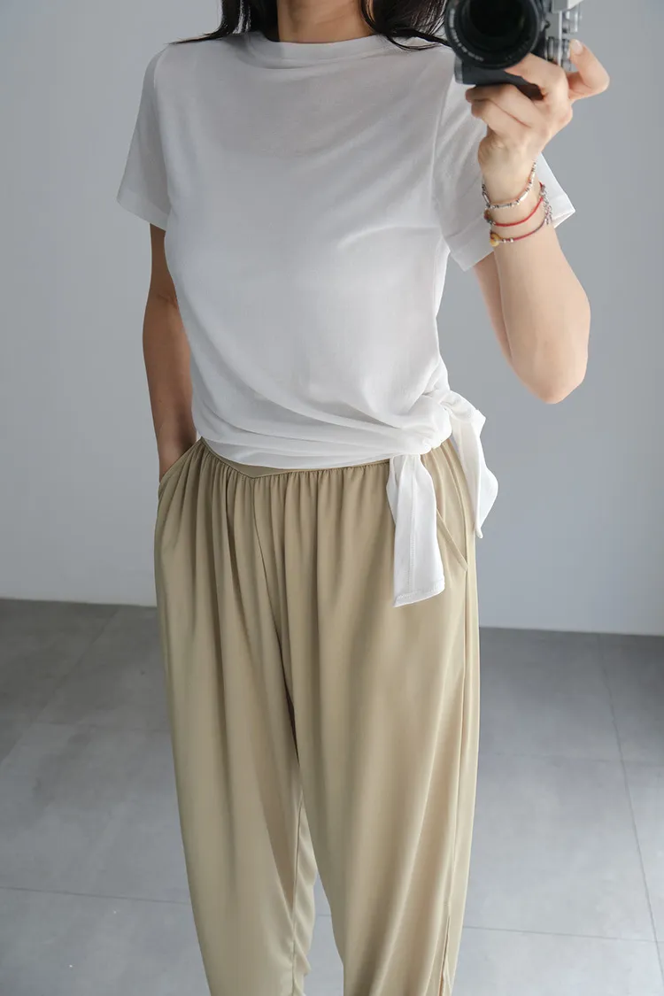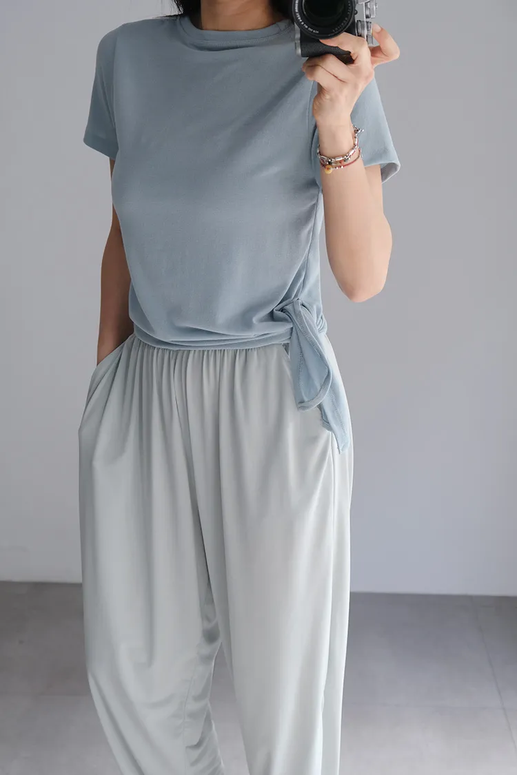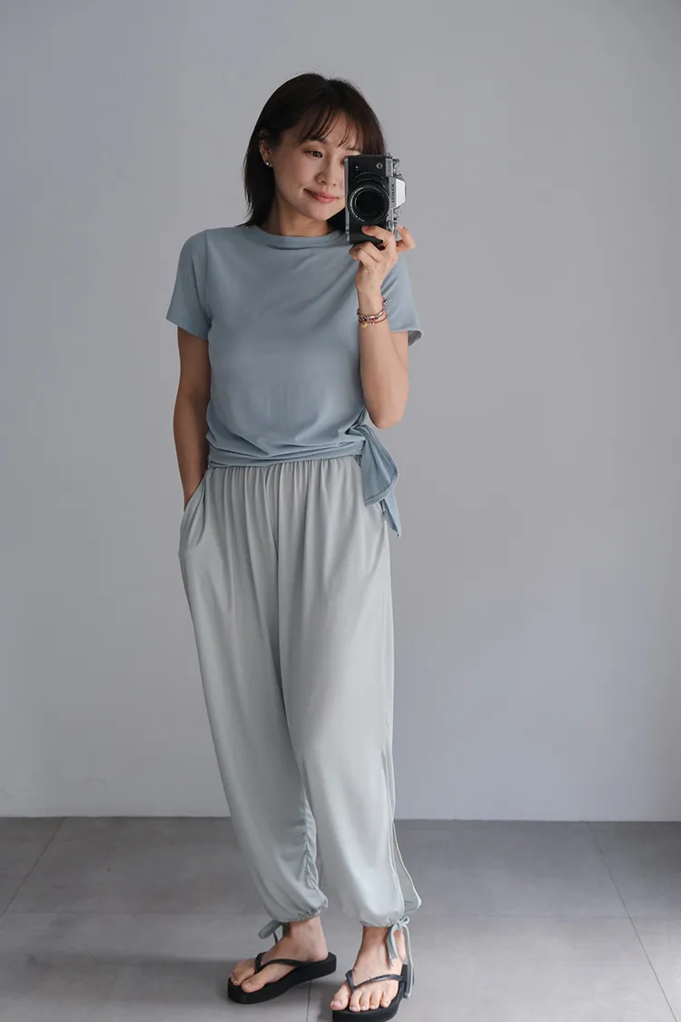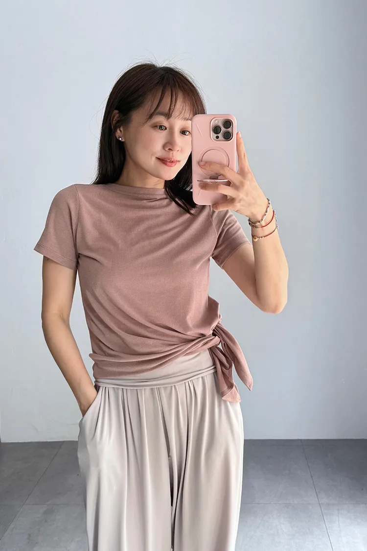 長版時可遮蓋臀部,瑜伽練習活動時可側綁單結,固定下擺。