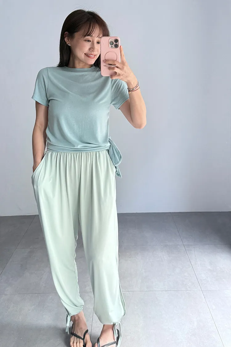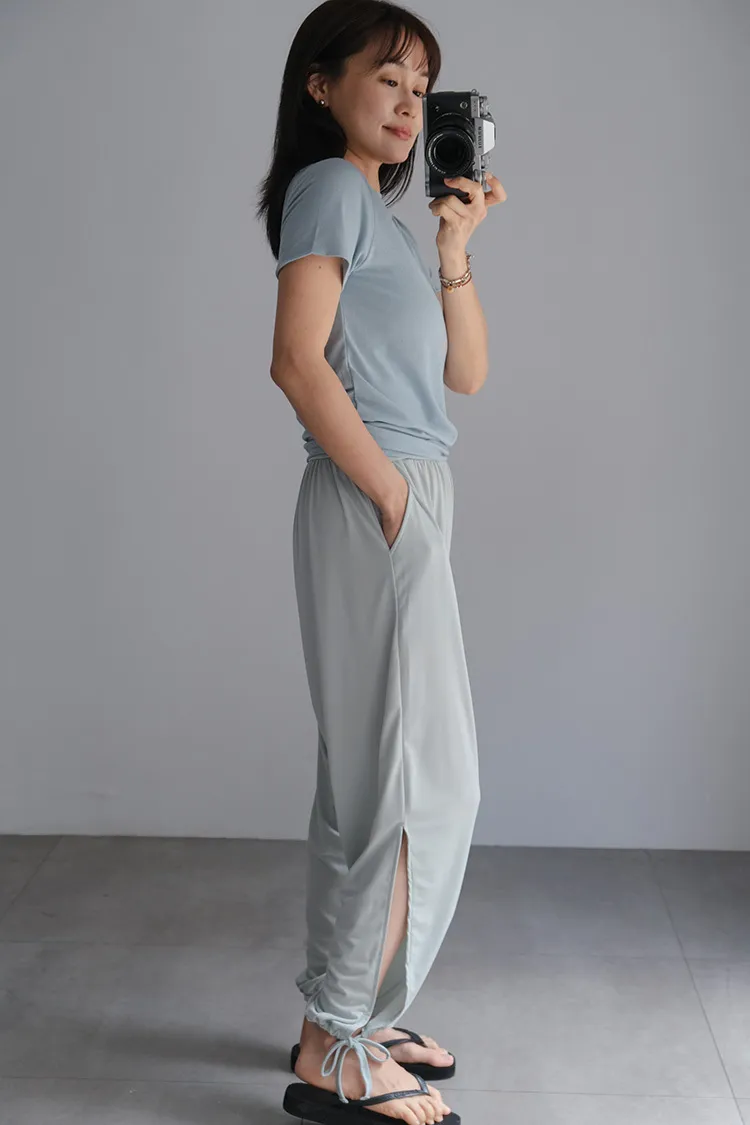 [特點] 牛奶冰絲涼感面料,彈性佳,下擺開衩剪裁
