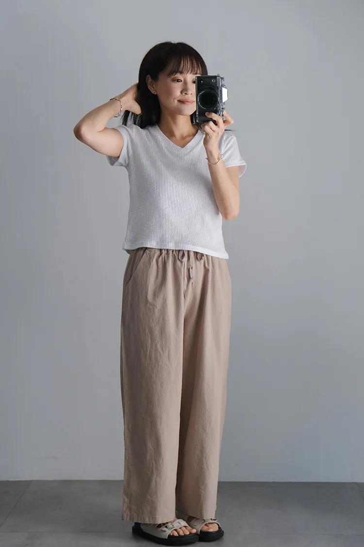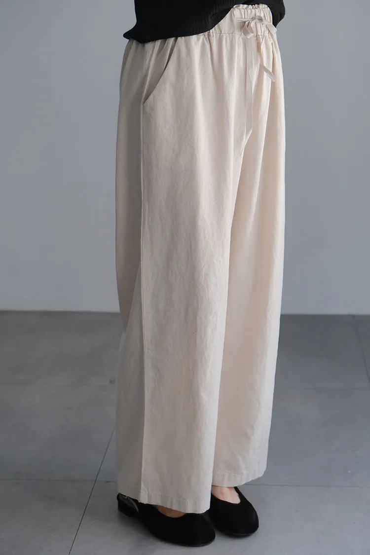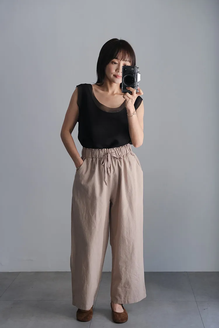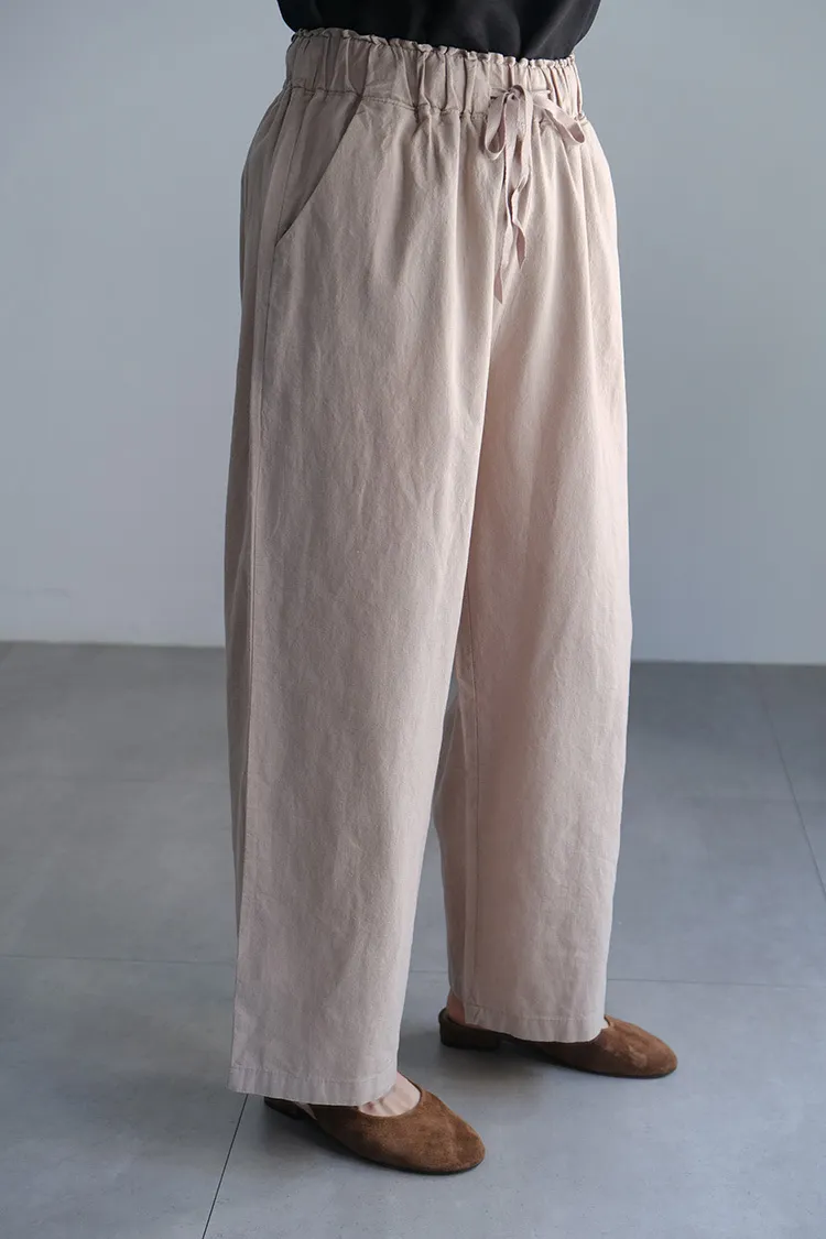 [特點] 抽繩鬆緊彈性腰圍,透氣的棉麻面料。