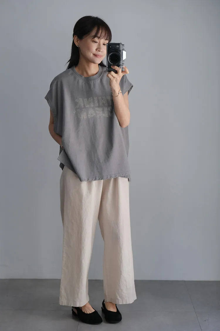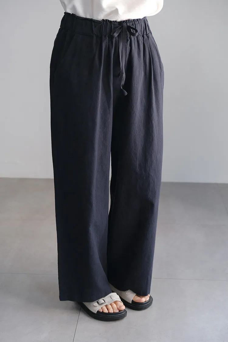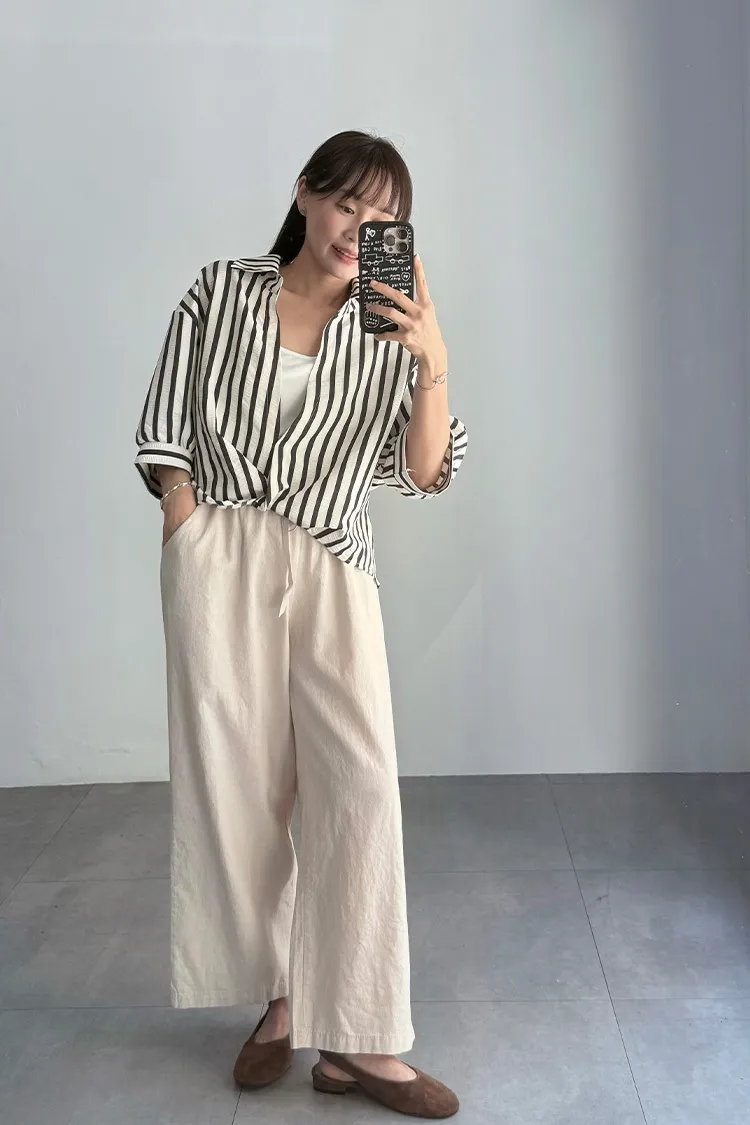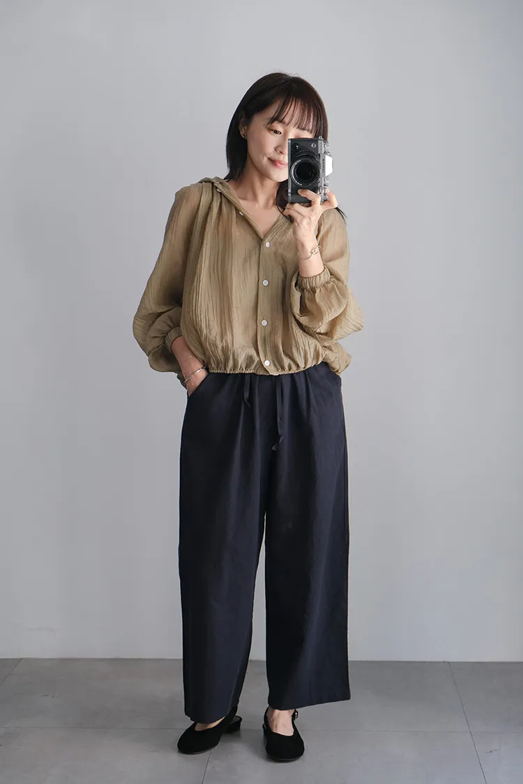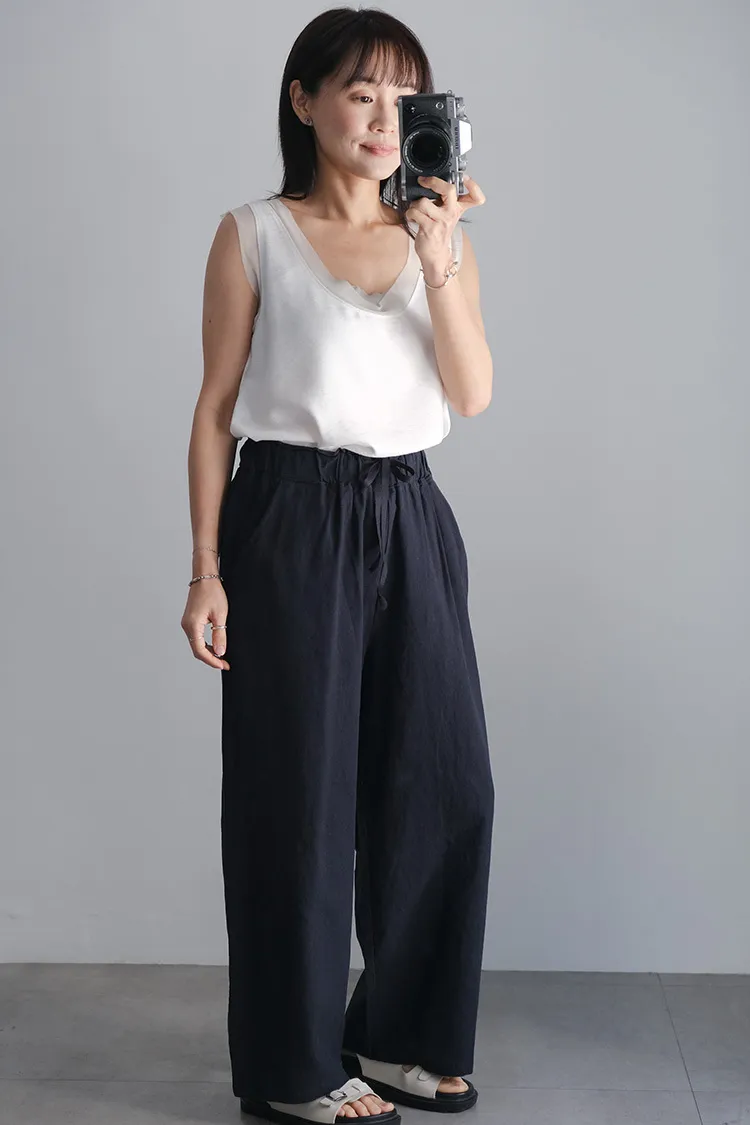 [特點] 抽繩鬆緊彈性腰圍,透氣的棉麻面料。