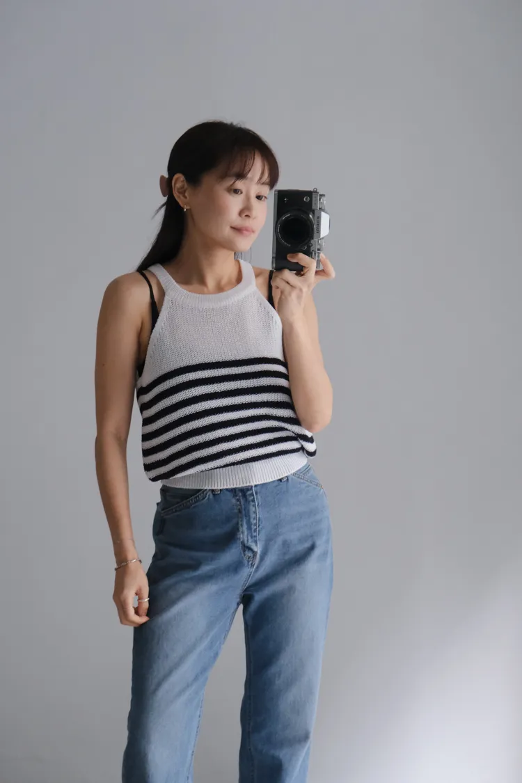 削肩條文針織背心