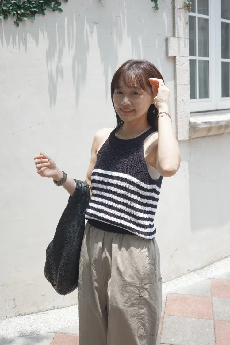 [特點] 削肩背心剪裁設計,軟料針織不刺膚。