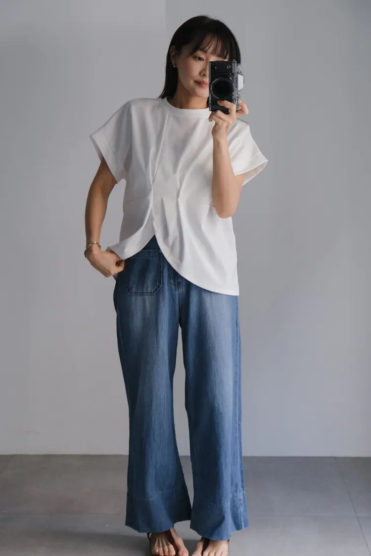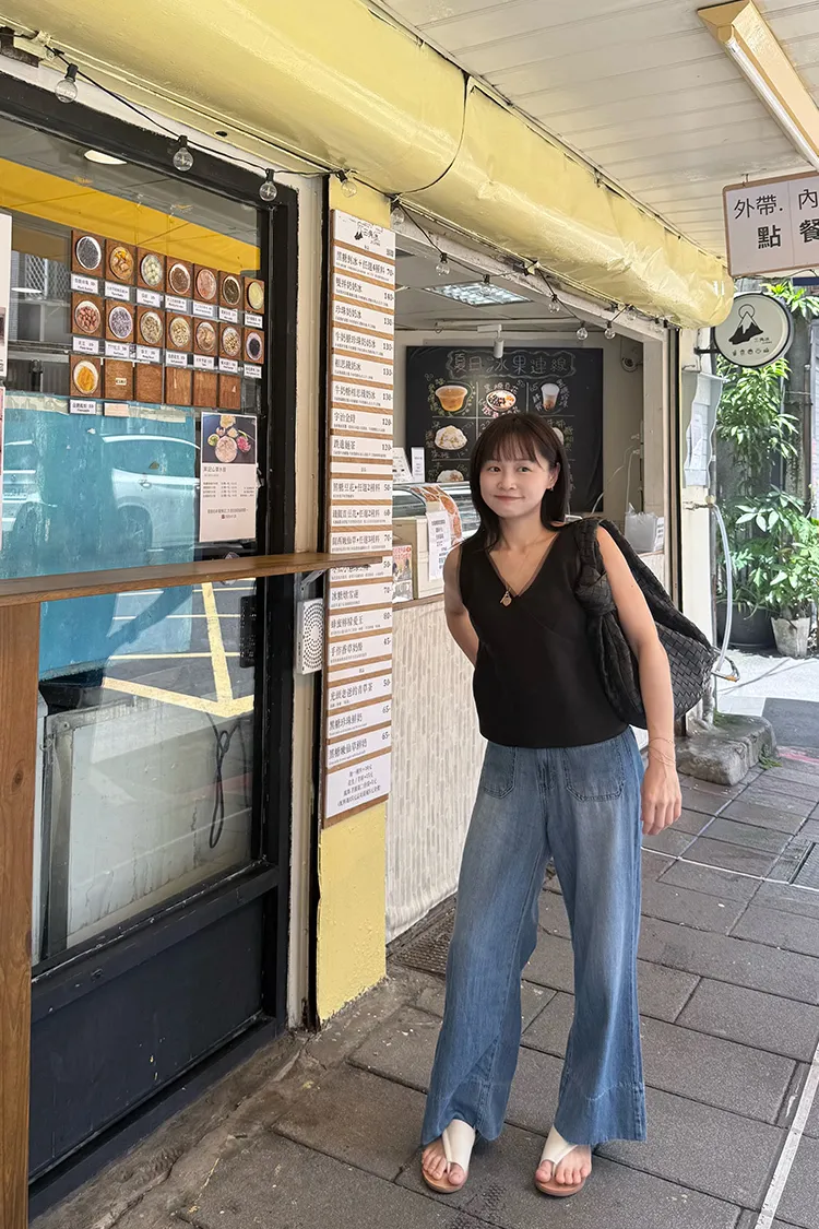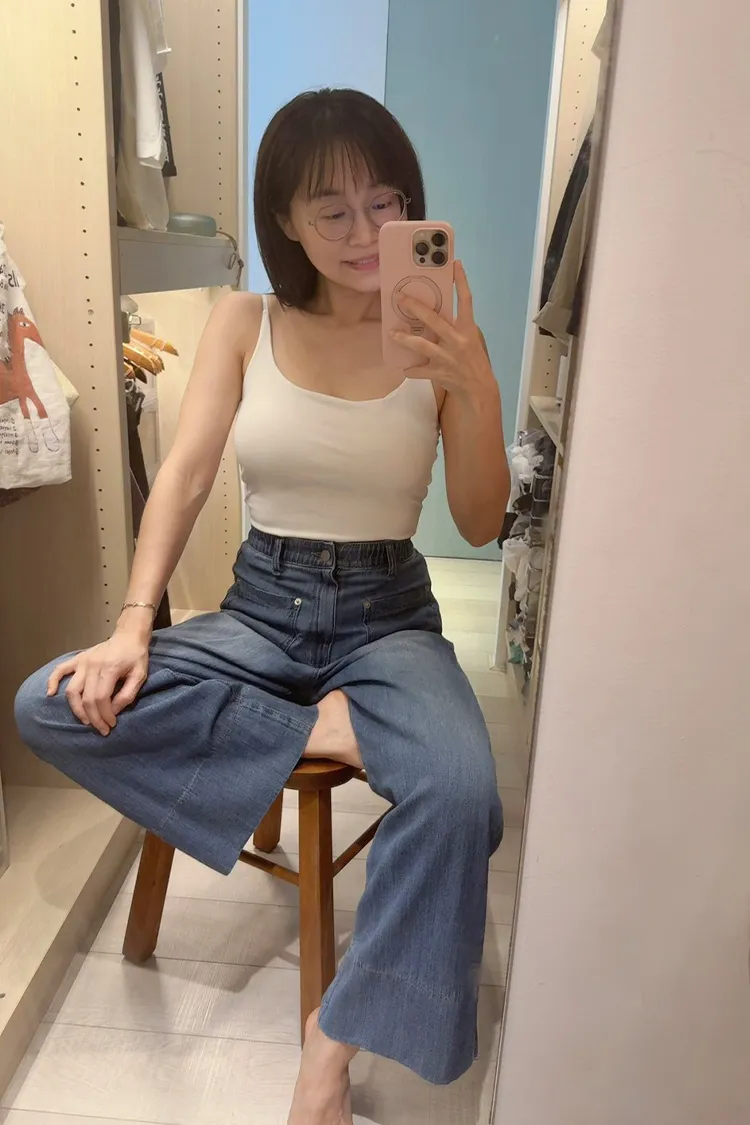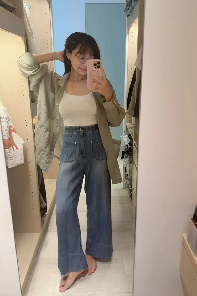 [特點] 中高腰+直筒寬版剪裁,鬆緊彈性腰圍舒適不勒肚,