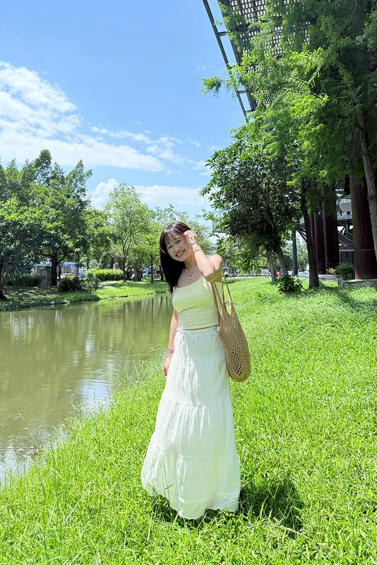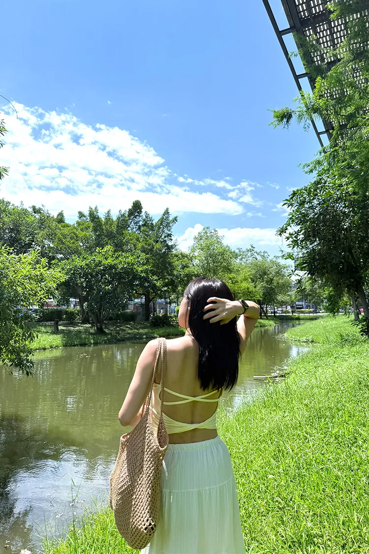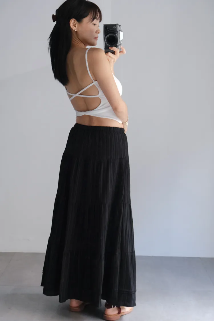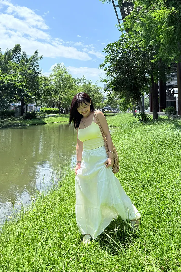 [特點] 抽繩鬆緊彈性腰圍,皺皺織紋感設計,下擺傘狀剪裁,有內裡。