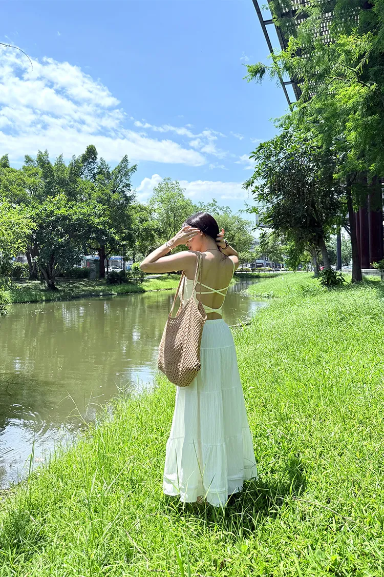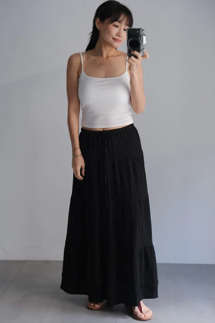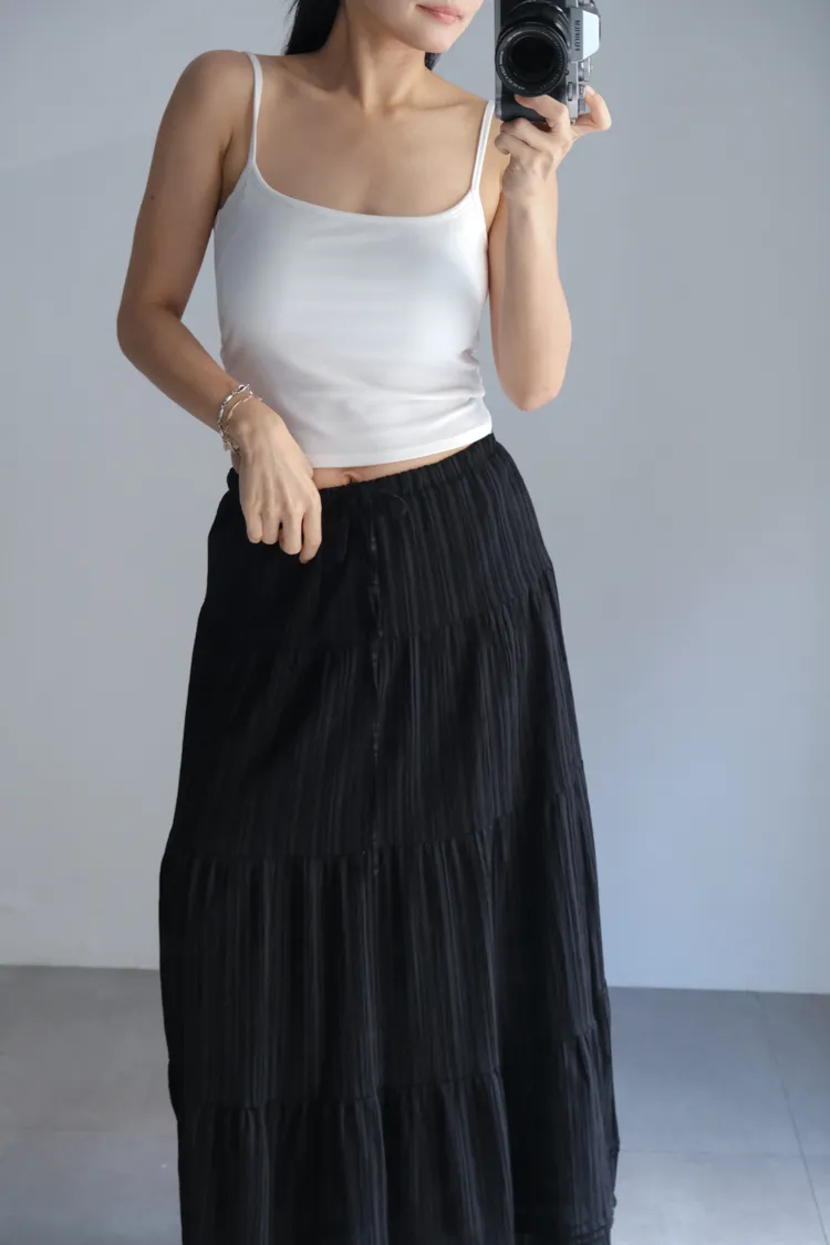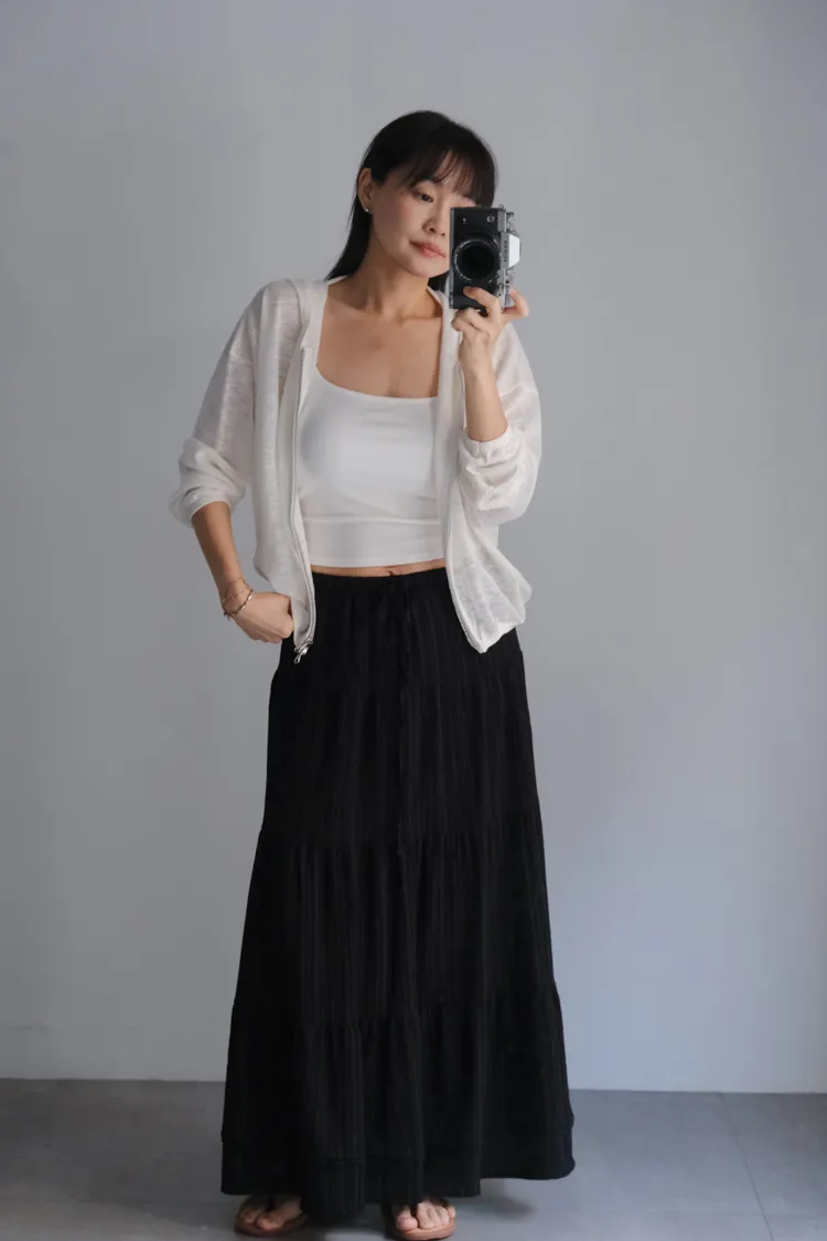 [特點] 抽繩鬆緊彈性腰圍,皺皺織紋感設計,下擺傘狀剪裁,有內裡。