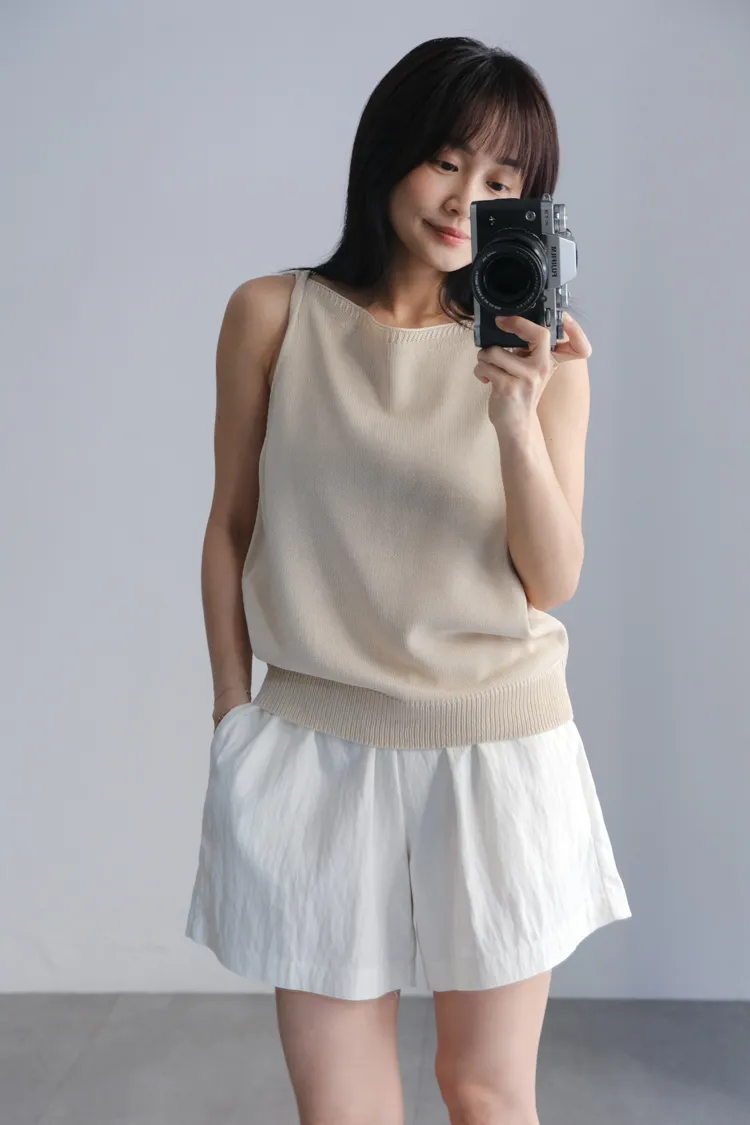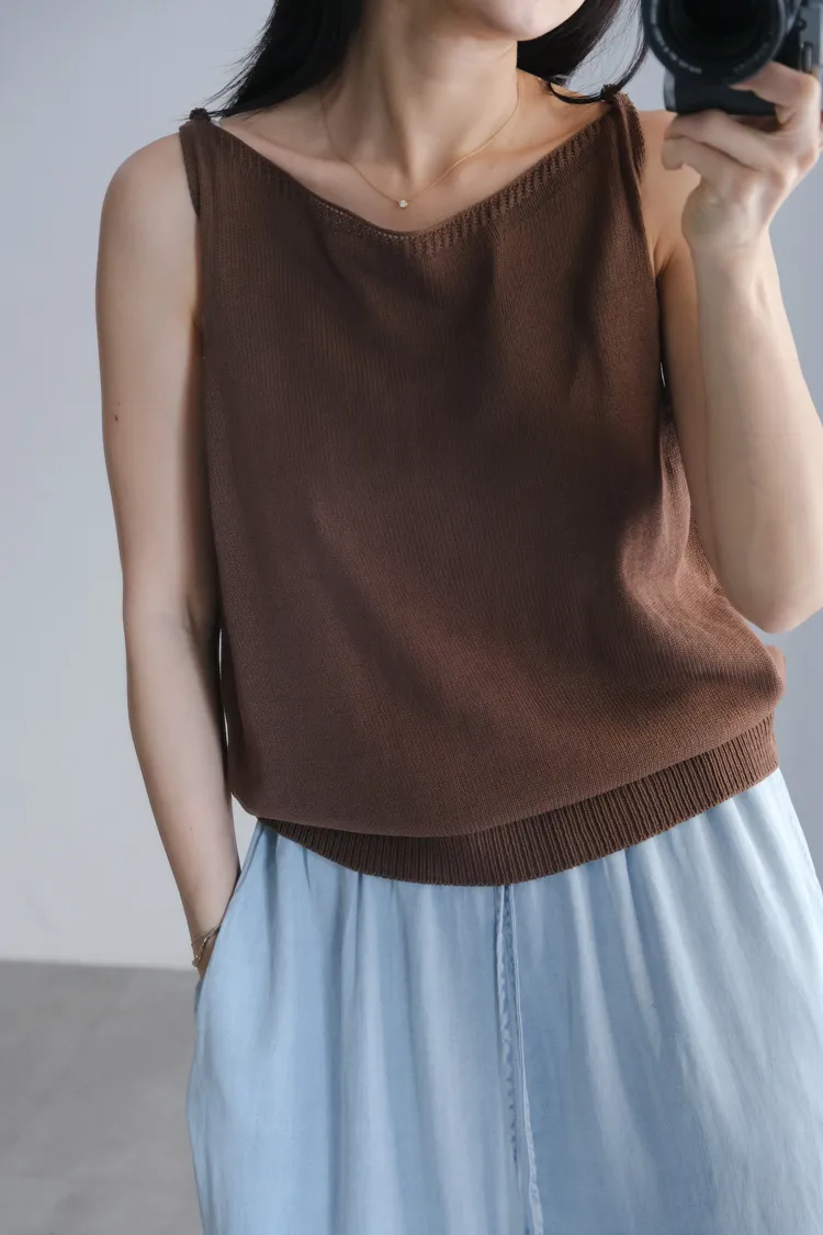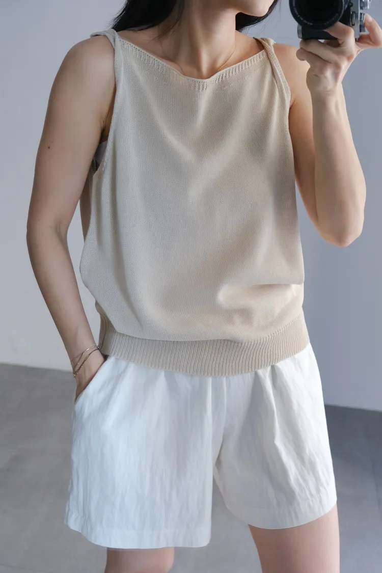 [特點] 手感柔軟針織面料,肩帶處扭結造型設計。