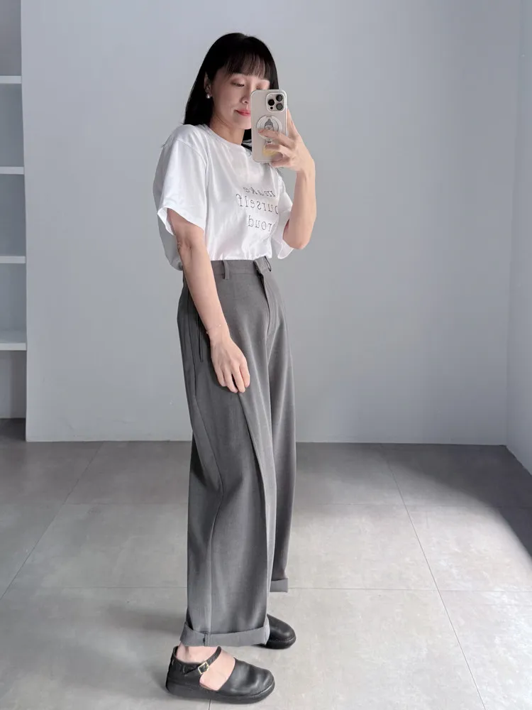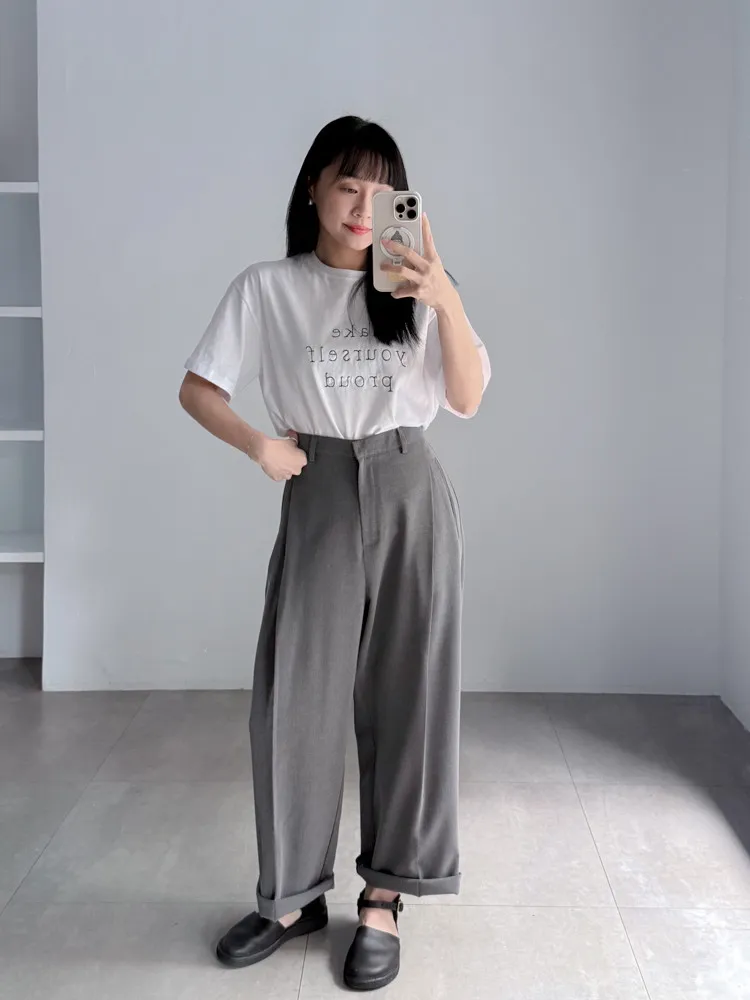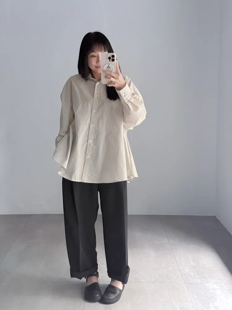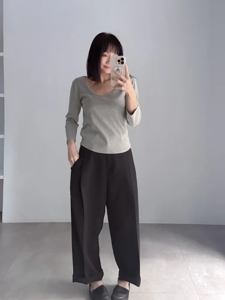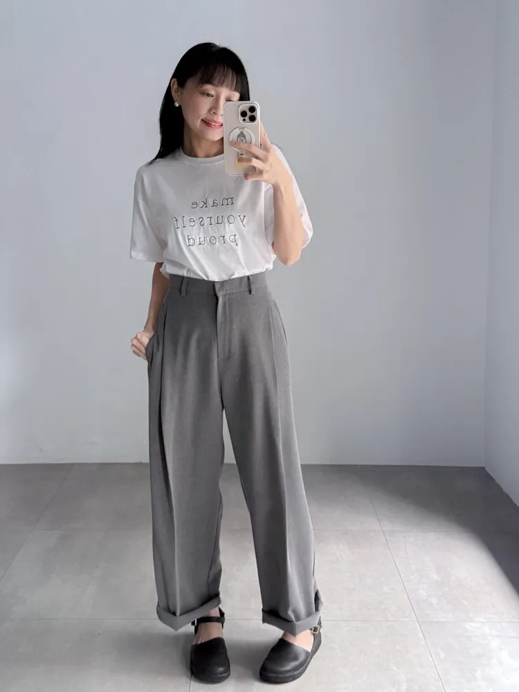 [成份] 聚酯纖維65%、嫘縈30%、彈性纖維5% [特點] 前打摺設計,寬老爺褲型,面料柔軟親膚,布料帶有然垂墜感,兩色布料摸起來手感略有不同。 [洗滌建議] 衣料含嫘縈成份,該材質在水中強度會變弱,為避免縮水,建議乾洗。