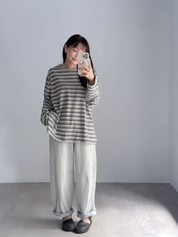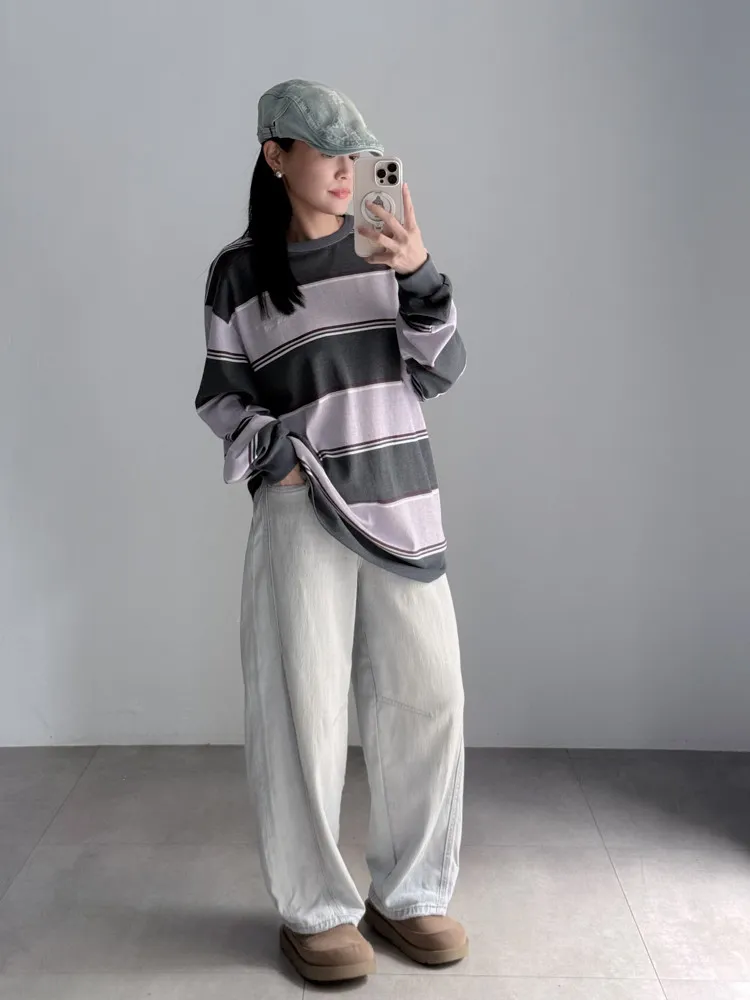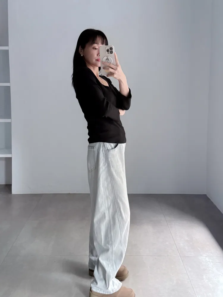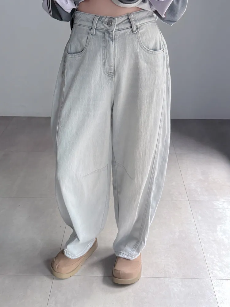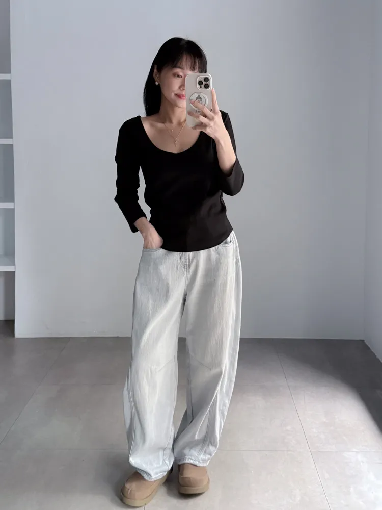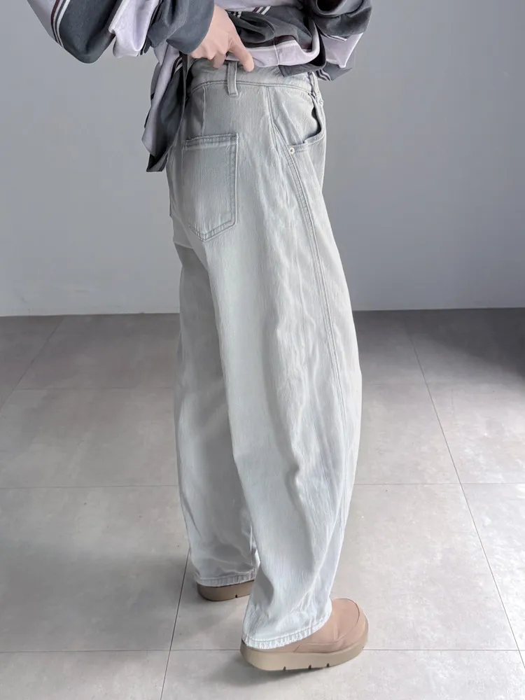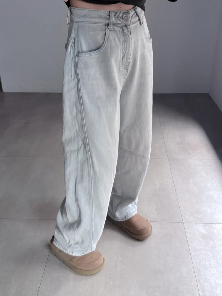 繭型彎刀淺色丹寧褲