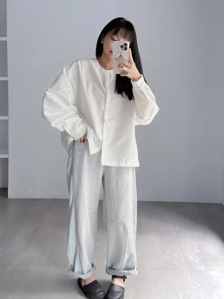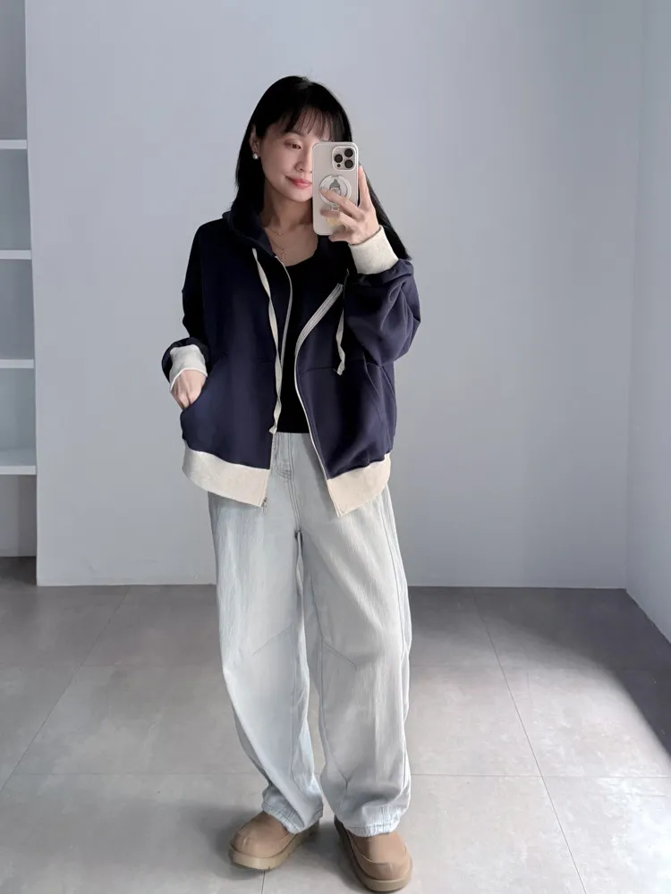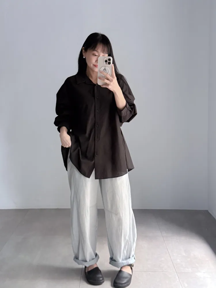 [特點] 四季可穿丹寧布料、無彈性,微繭型寬鬆版型,拼接車線細節。