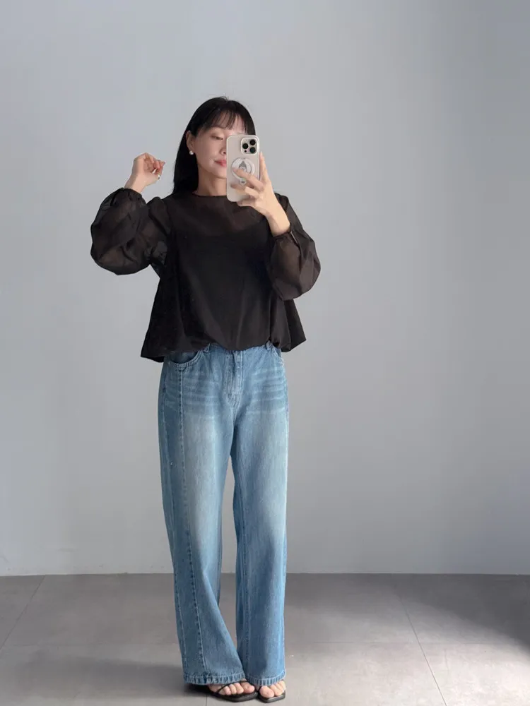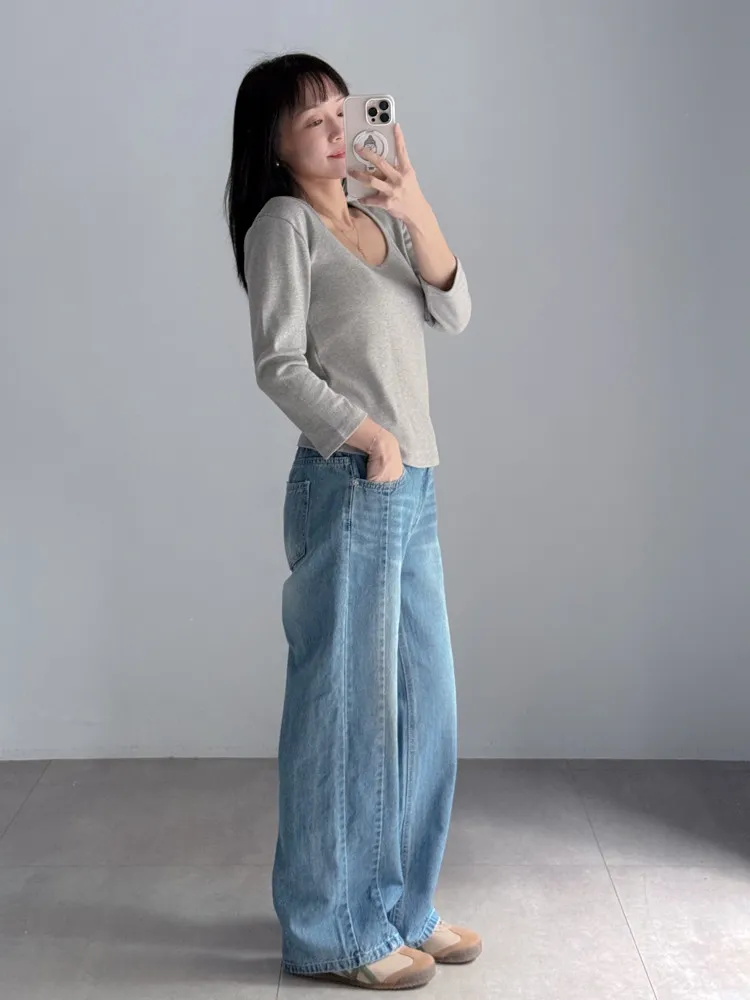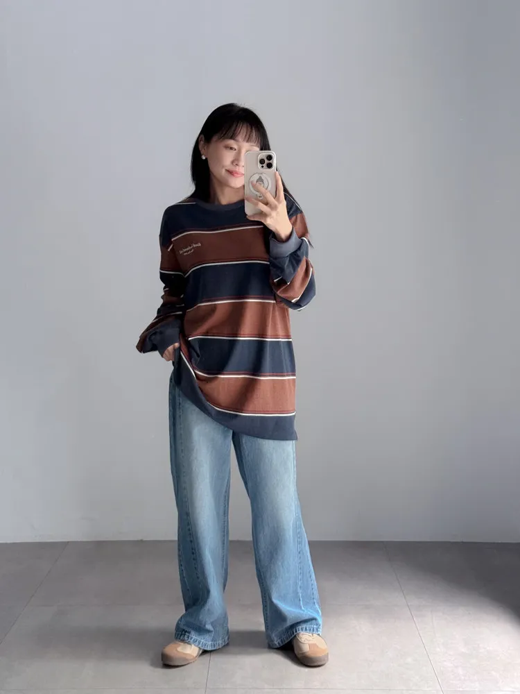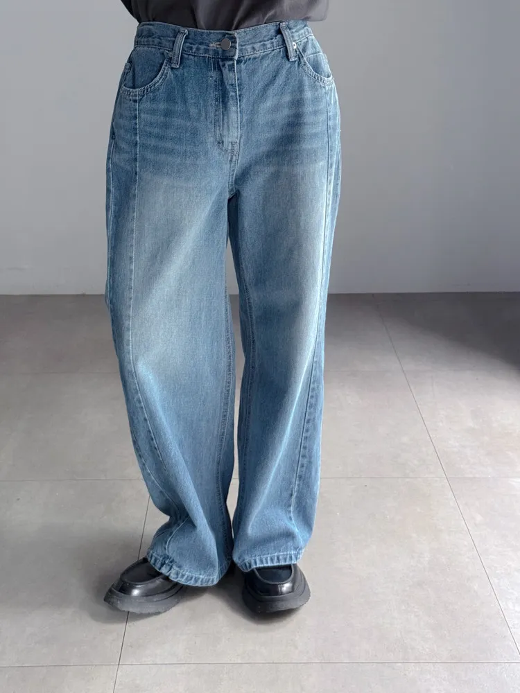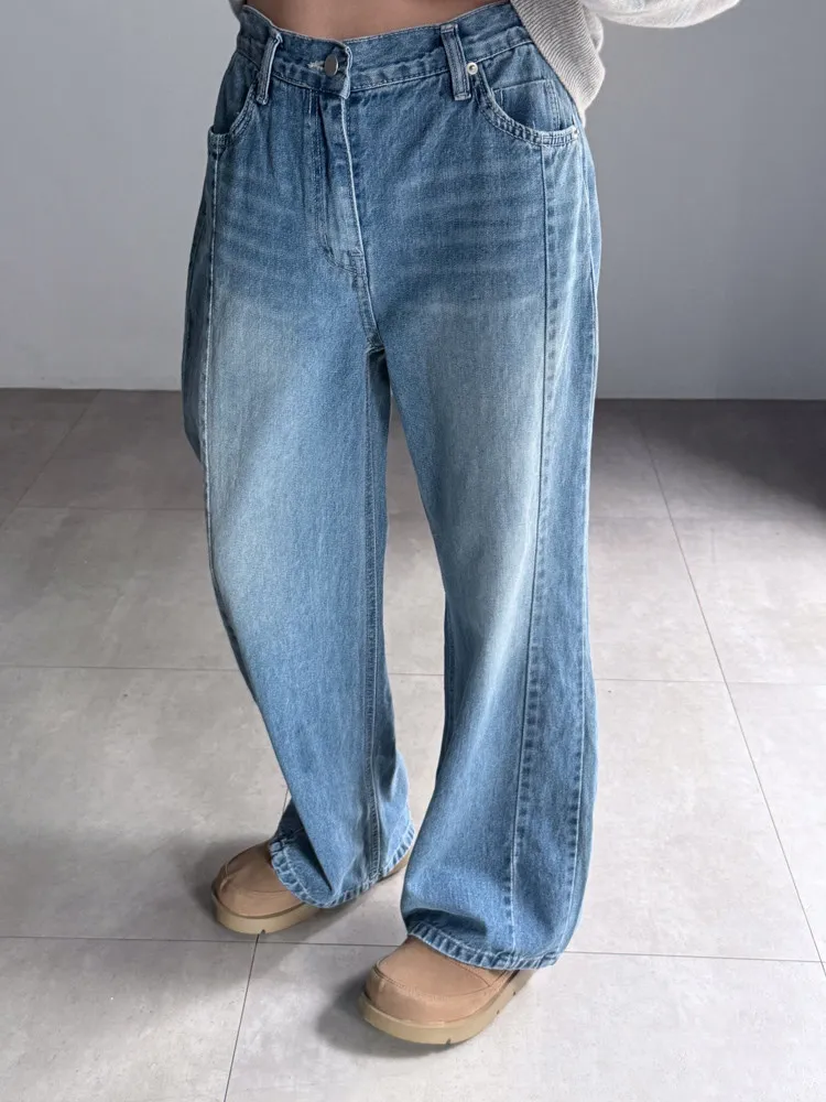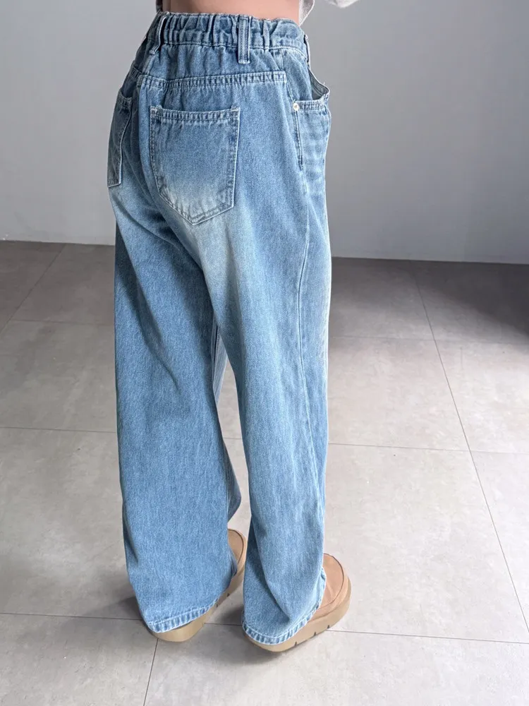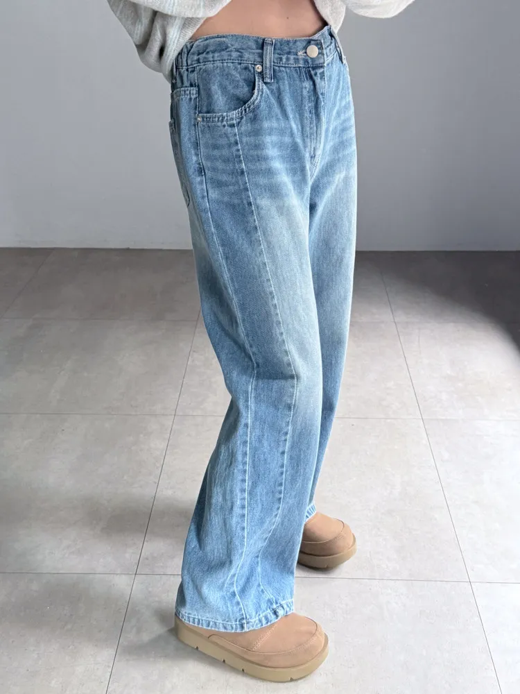 側車線彈性牛仔寬褲