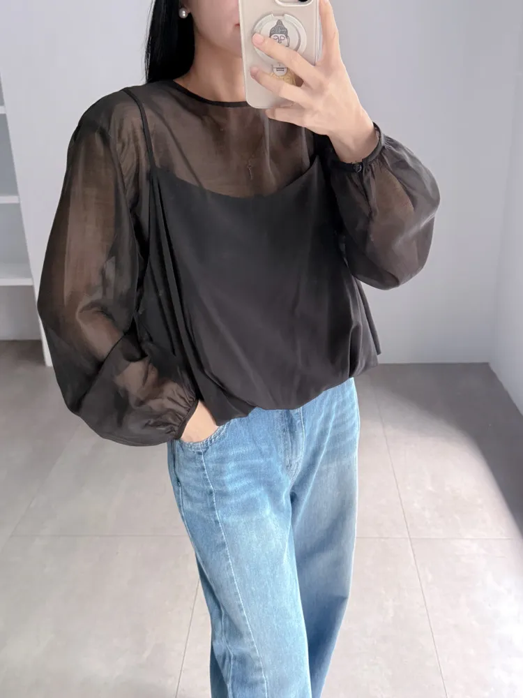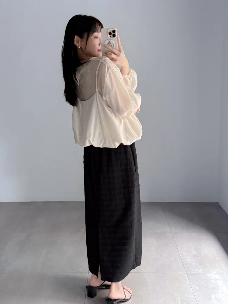 雙層假兩件透膚衣