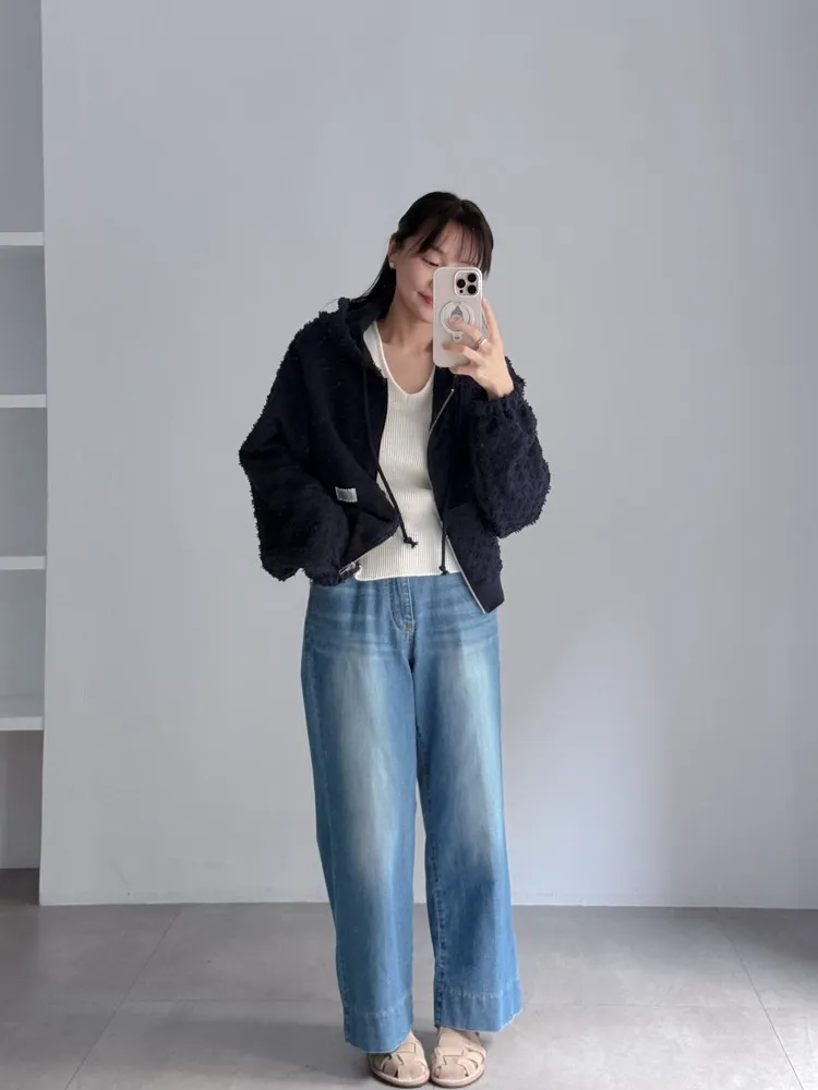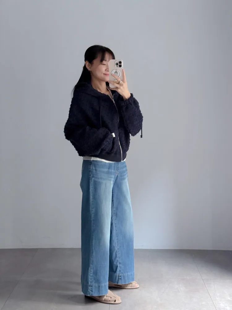 [特點] 立體顆粒紋理布料,連帽+抽繩細節,落肩寬鬆剪裁,下擺與袖口羅紋縮口。