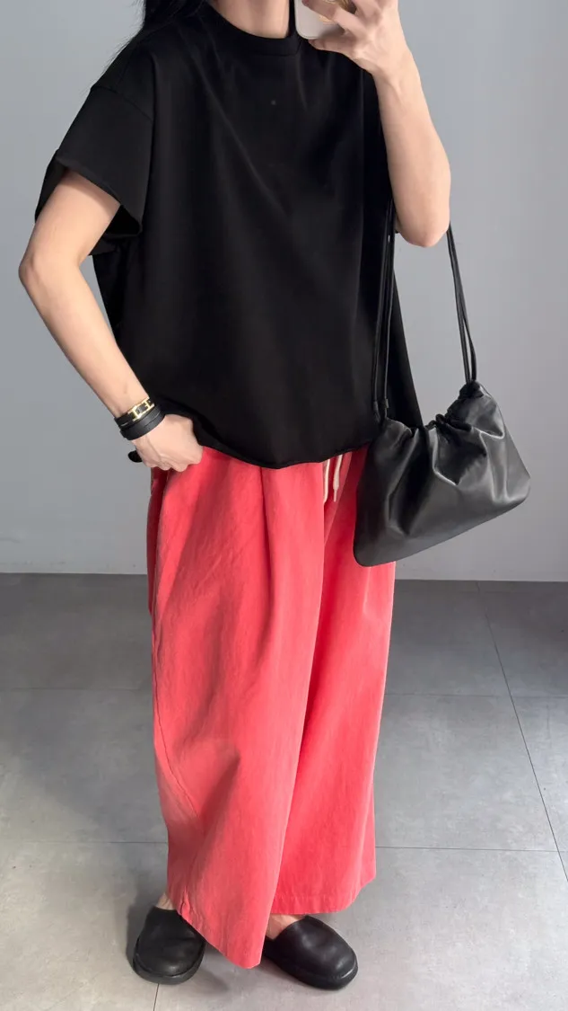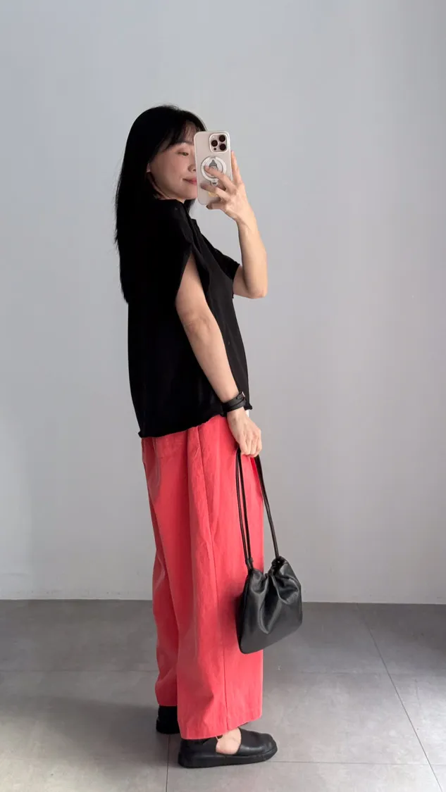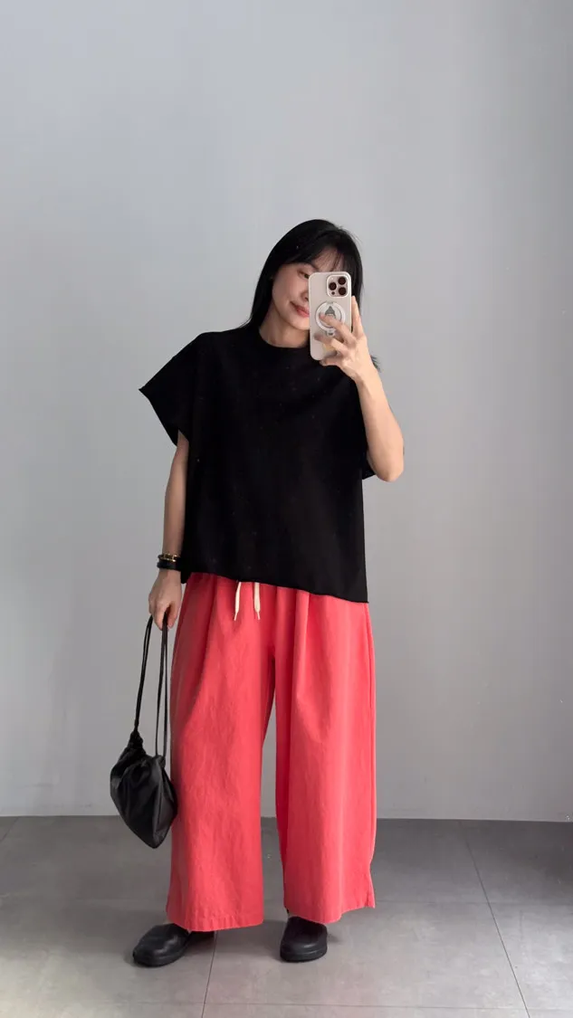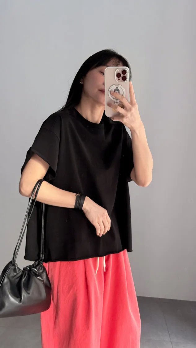 [特點] 落肩剪裁,不收邊感的車線造型,彈性舒適手感棉料。