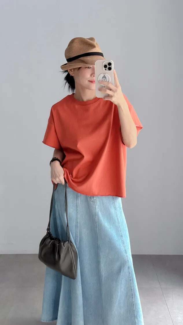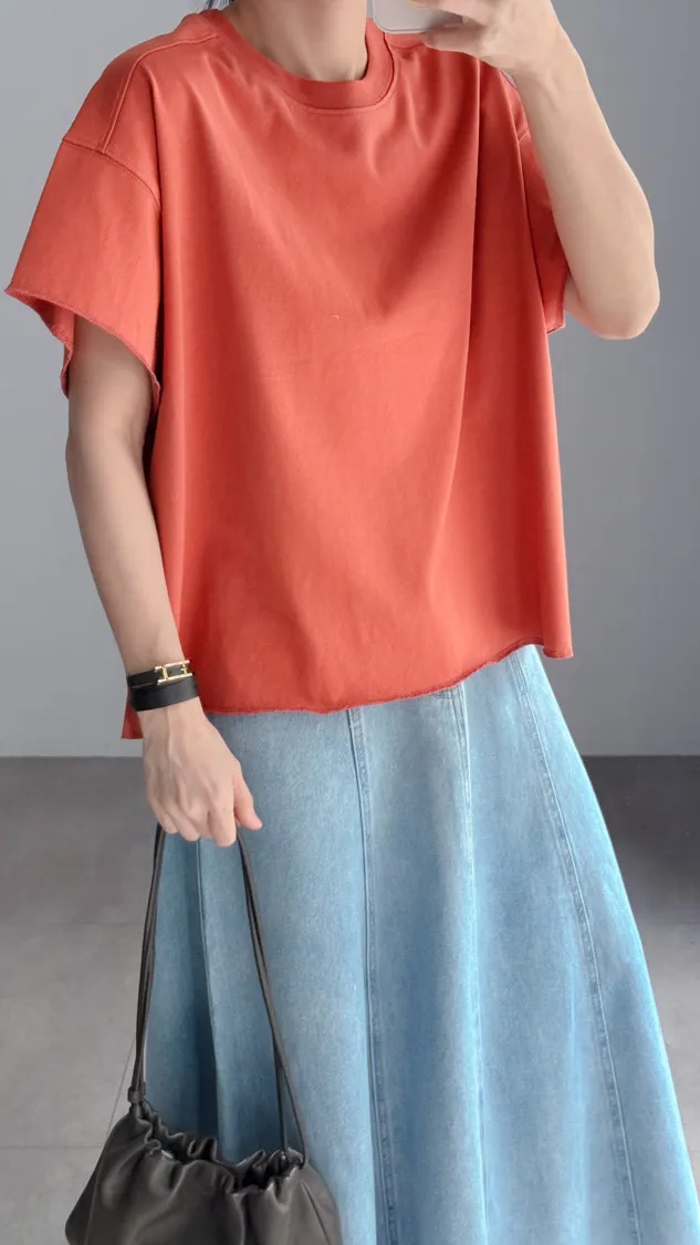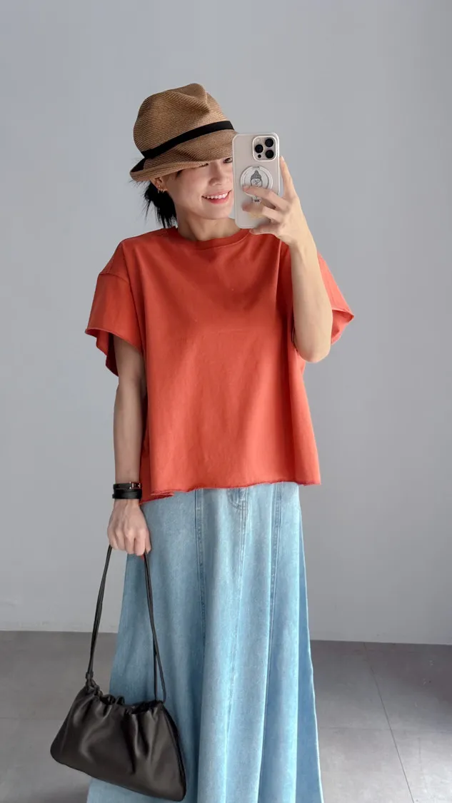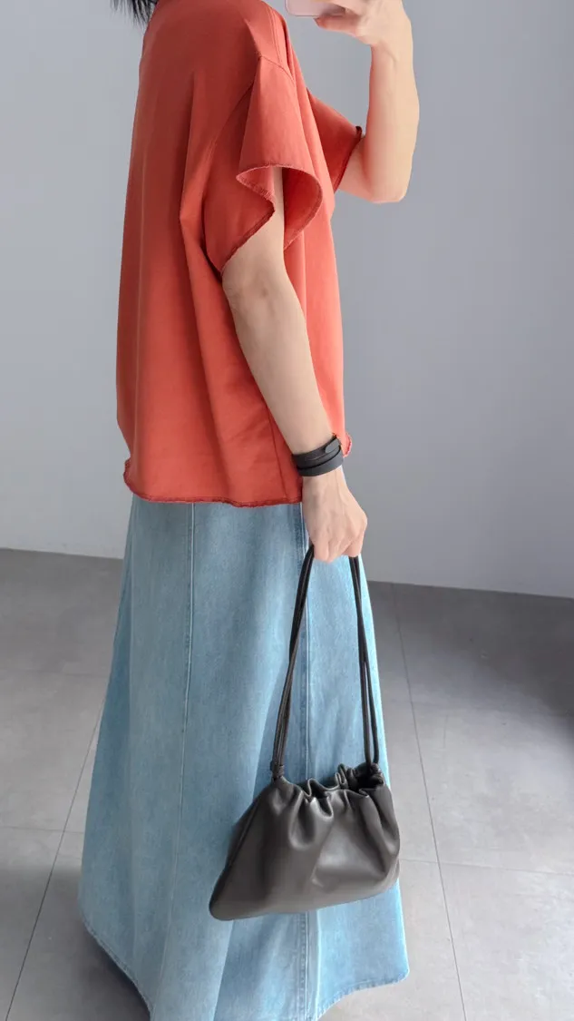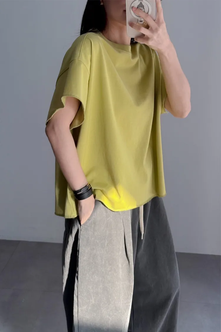 [特點] 落肩剪裁,不收邊感的車線造型,彈性舒適手感棉料。