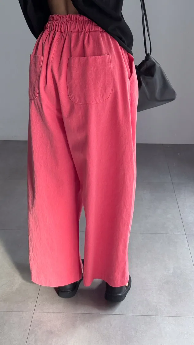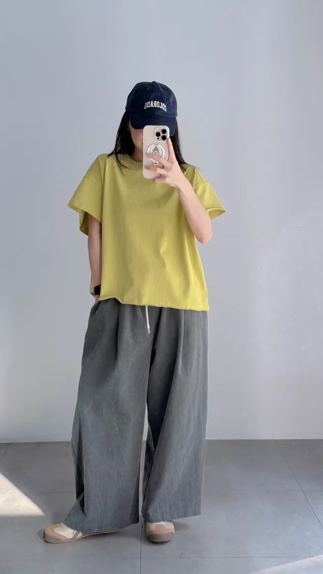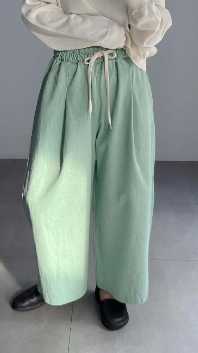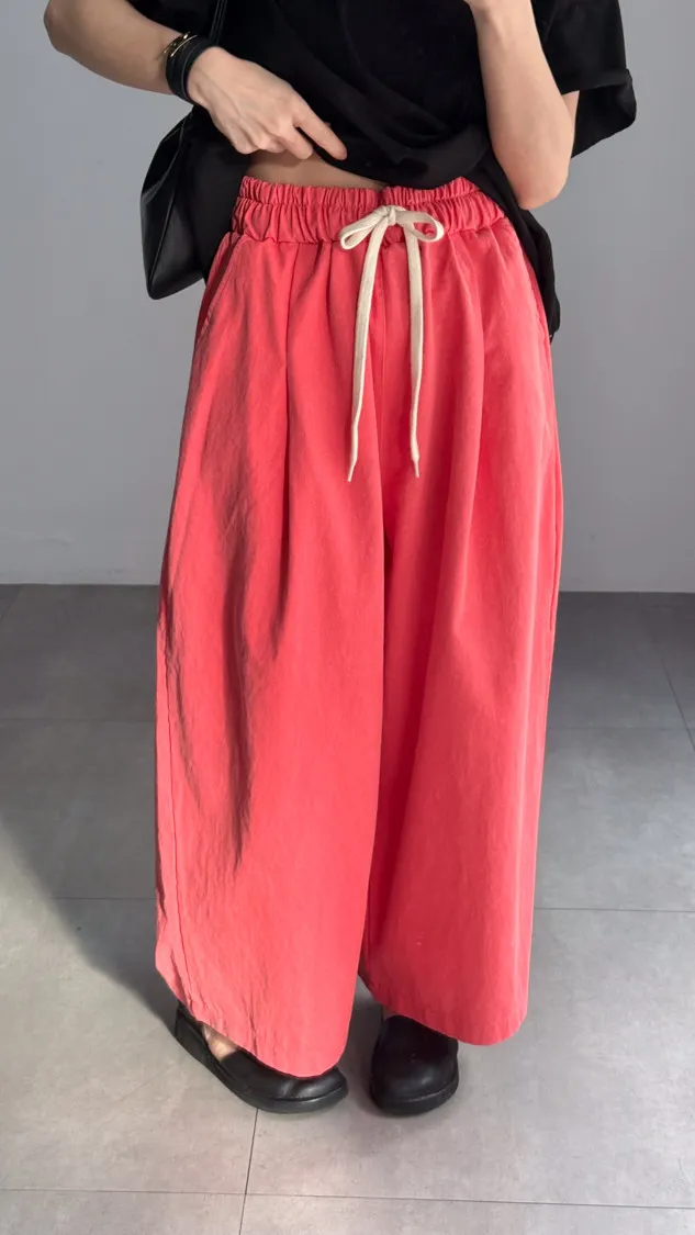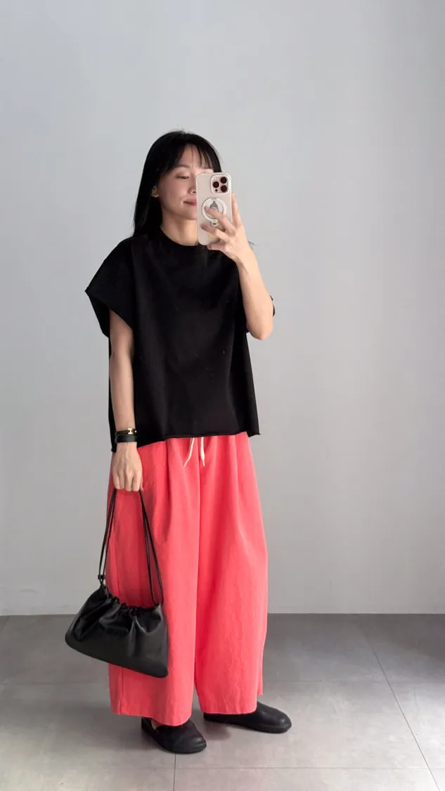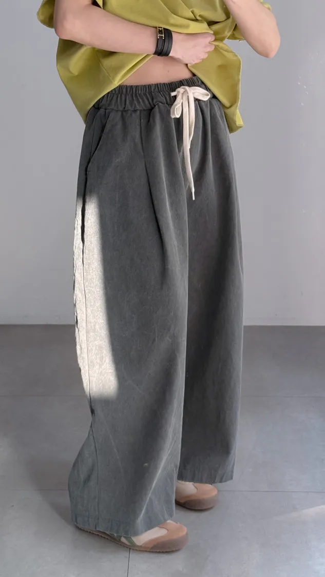 [特點] 鬆緊彈性腰圍,抽繩調整腰圍鬆緊,寬管剪裁,四季可搭的日常褲型。