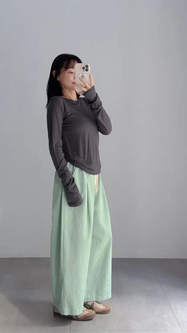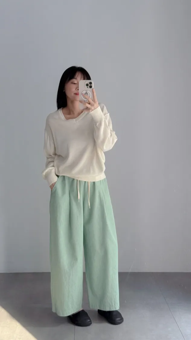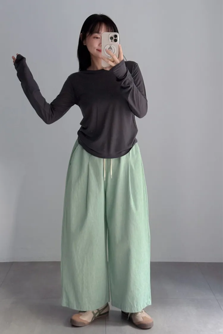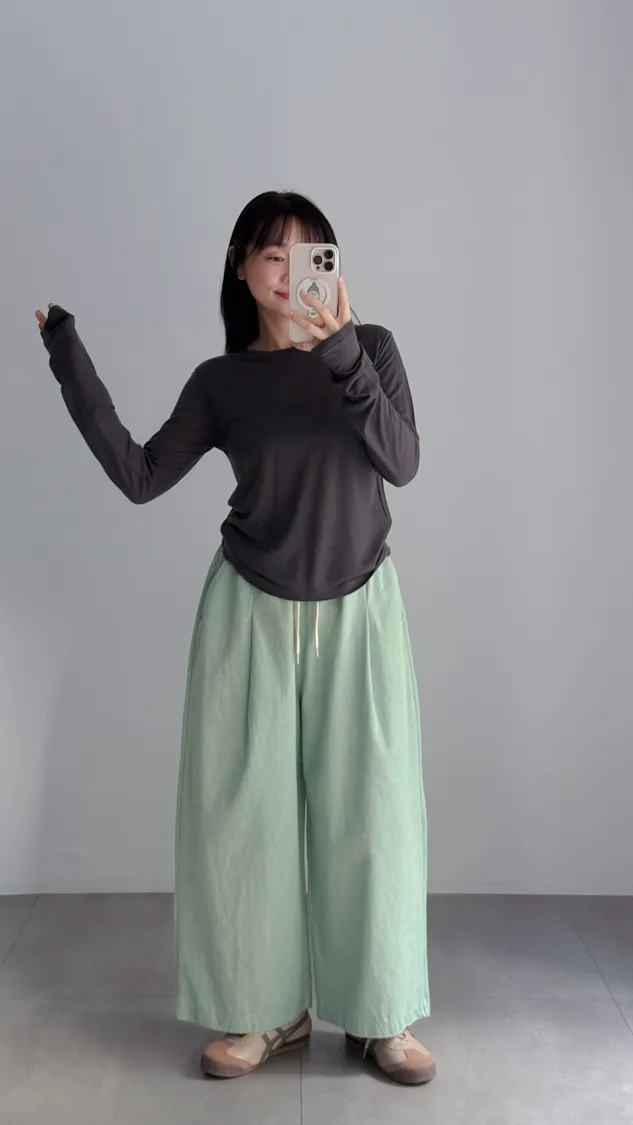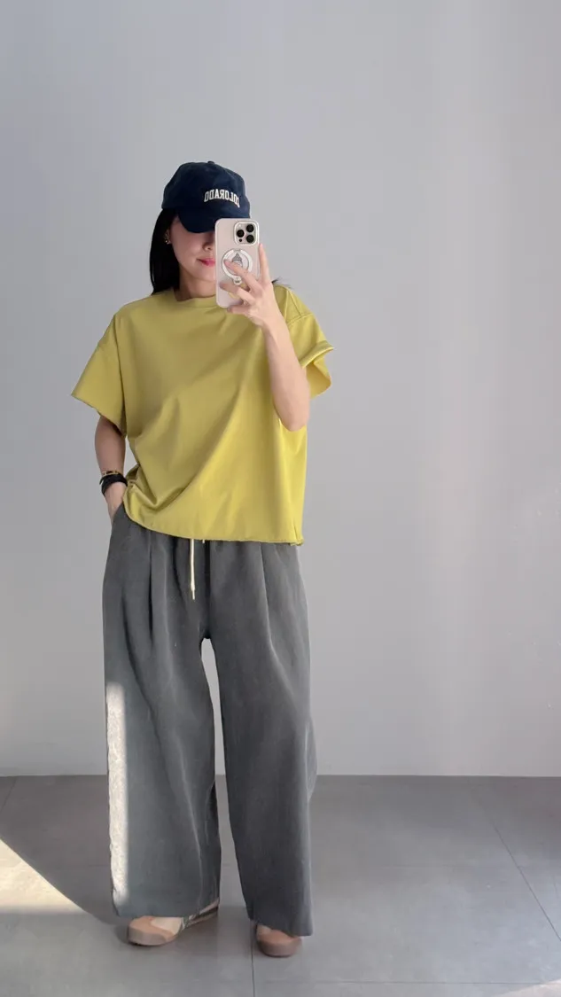 [特點] 鬆緊彈性腰圍,抽繩調整腰圍鬆緊,寬管剪裁,四季可搭的日常褲型。