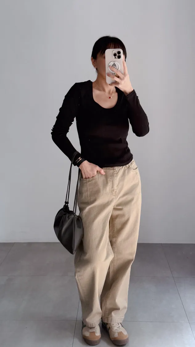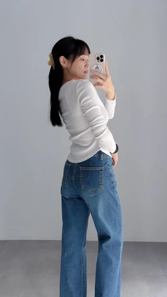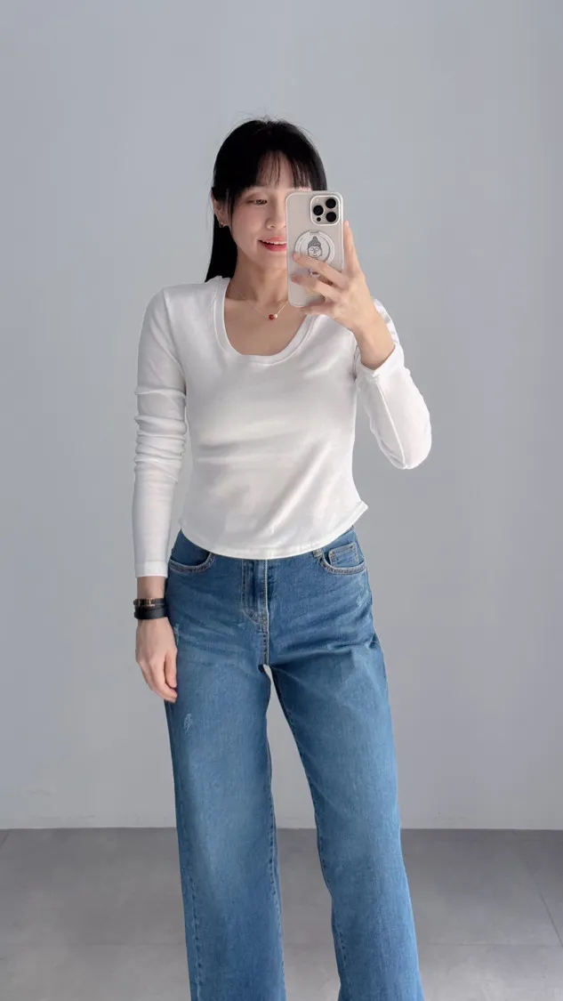 [特點] U領+坑紋設計,合身不貼身,下圓弧剪裁。