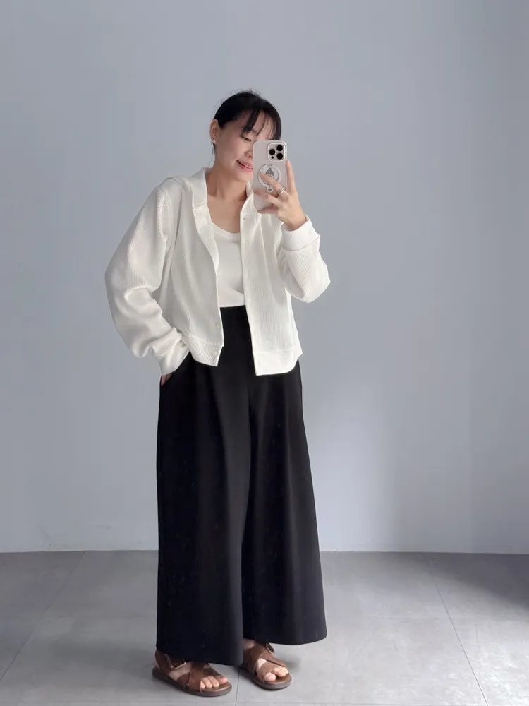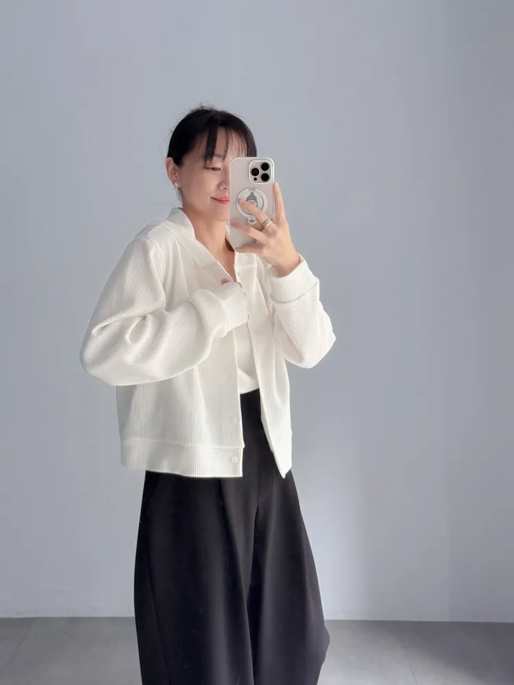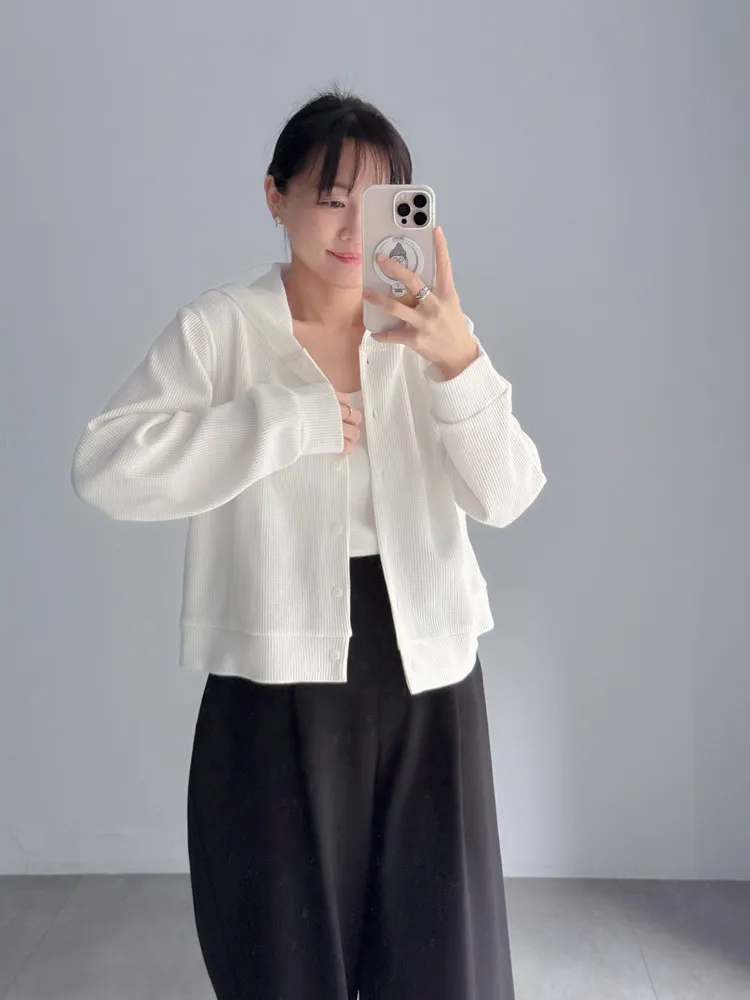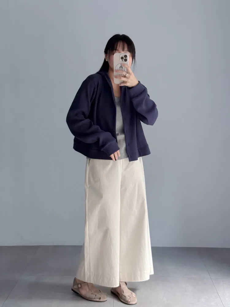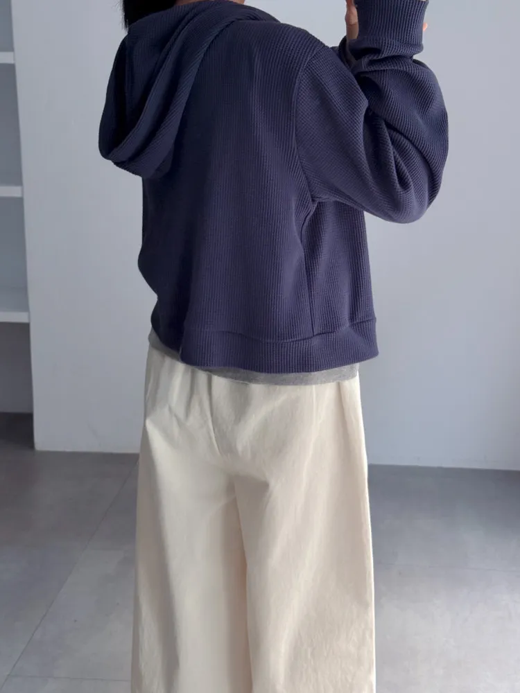 [特點] 立體織紋針織布,微寬鬆短版剪裁,連帽排扣設計。