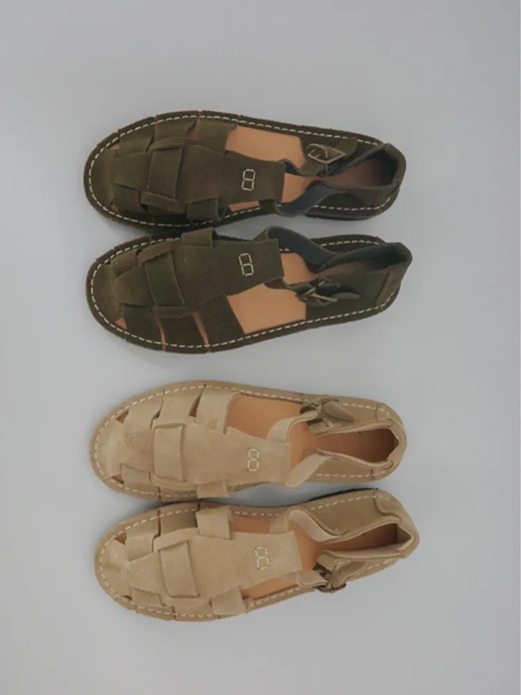 [特點] 牛皮鞋面,柔軟度高,編織包覆設計,可調式扣帶、穿脫方便。