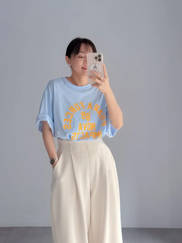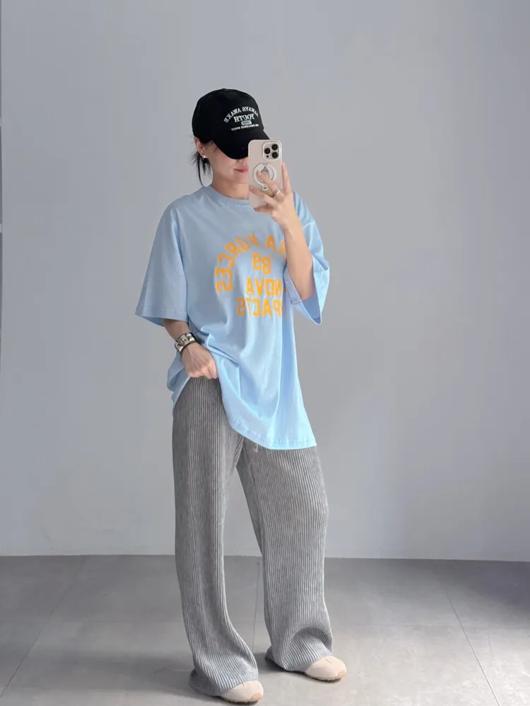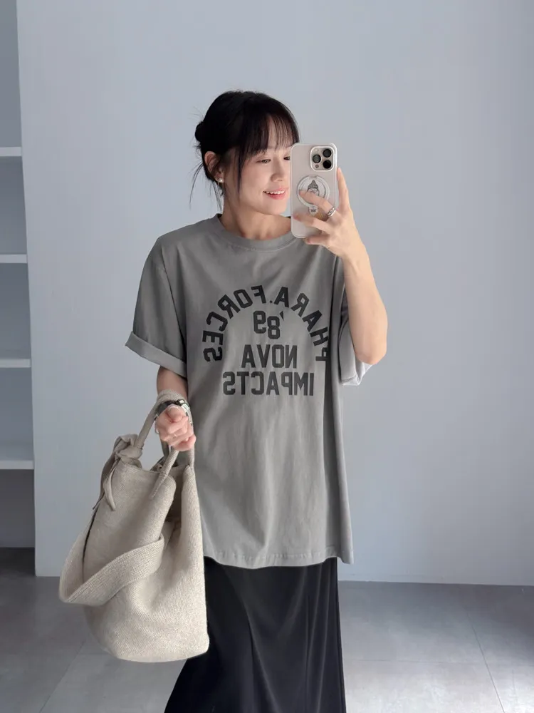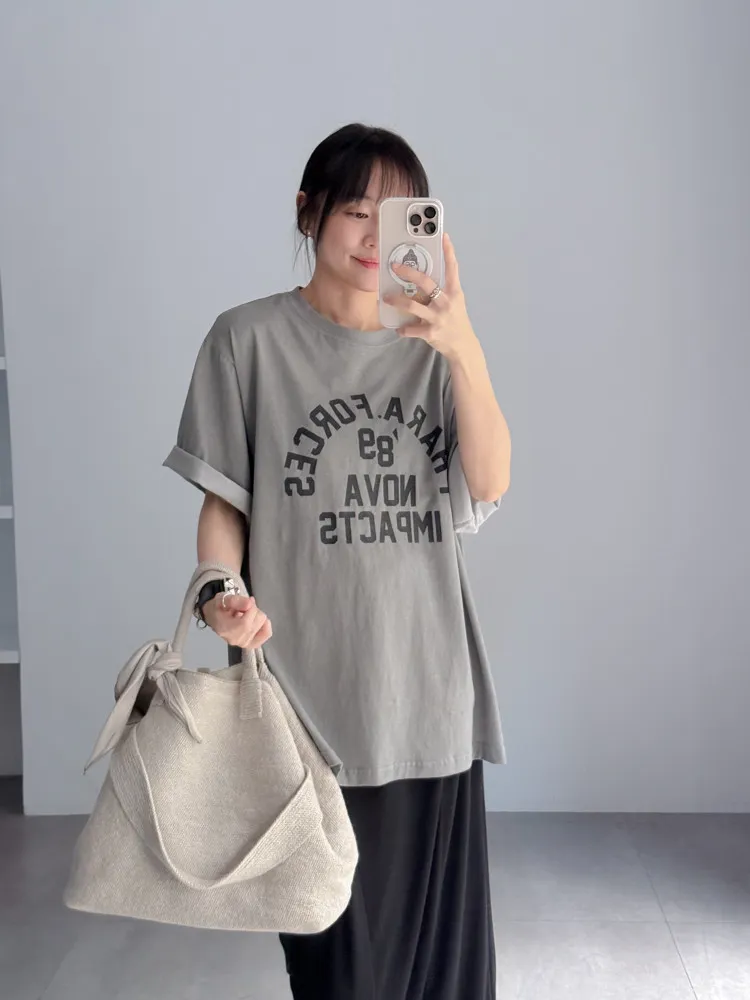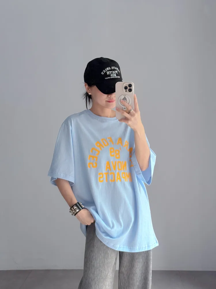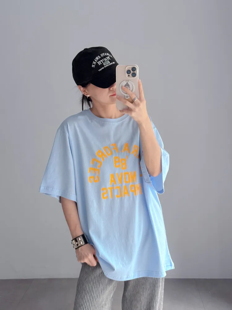 [特點] 撞色壓印字體圖案,落肩微寬鬆版型剪裁,舒適棉面料。