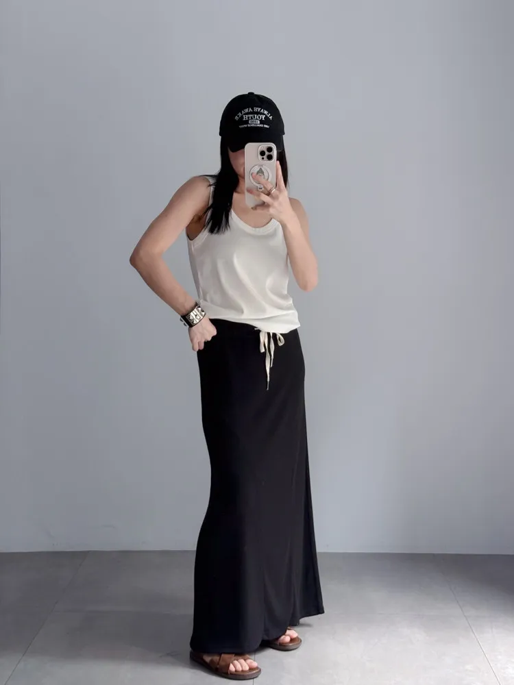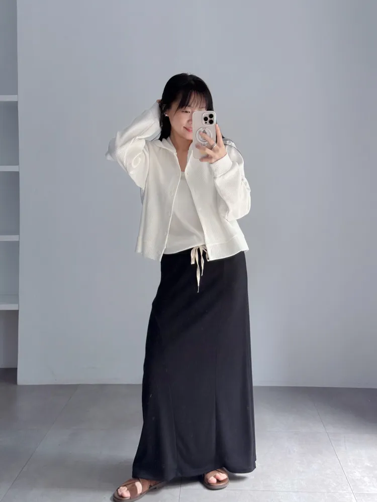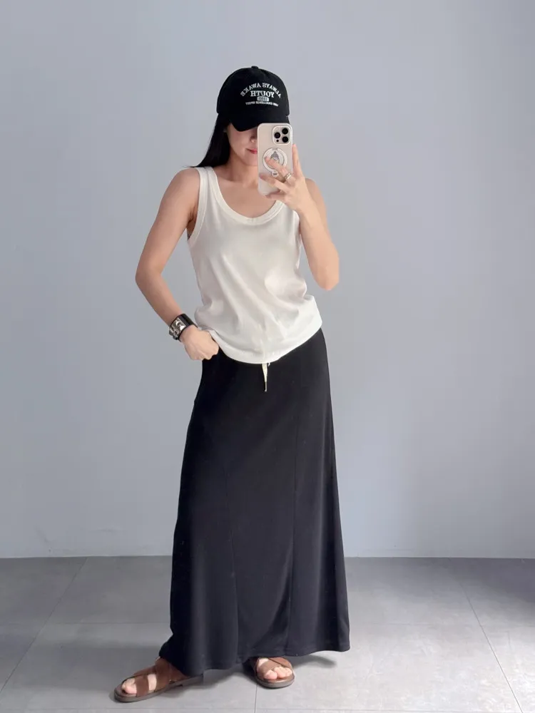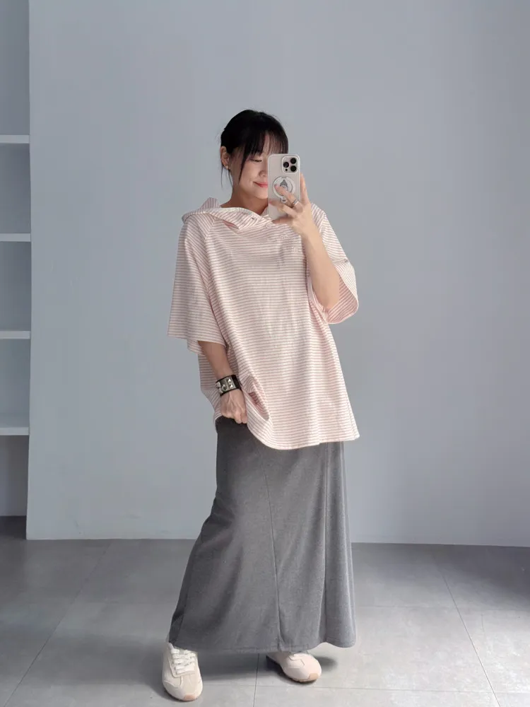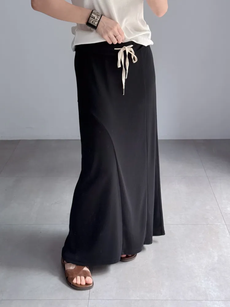 [特點] 內抽繩腰頭可調整,弧形拼接剪裁,自然傘狀裙擺,彈性棉感布料。