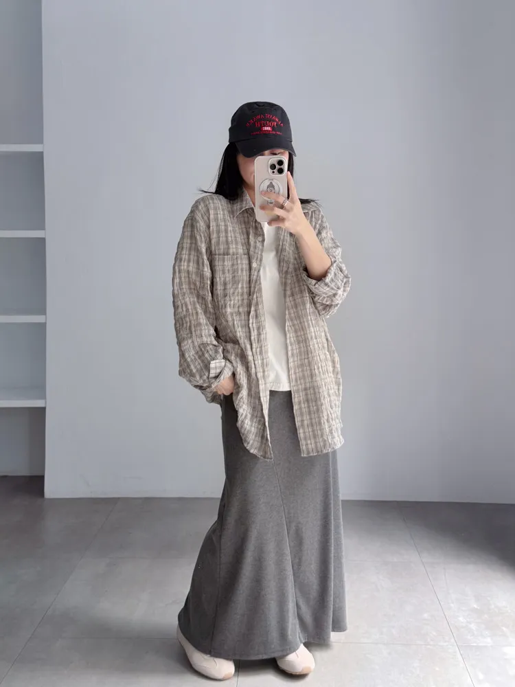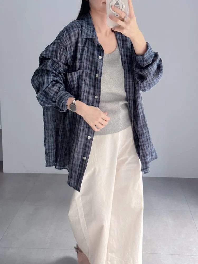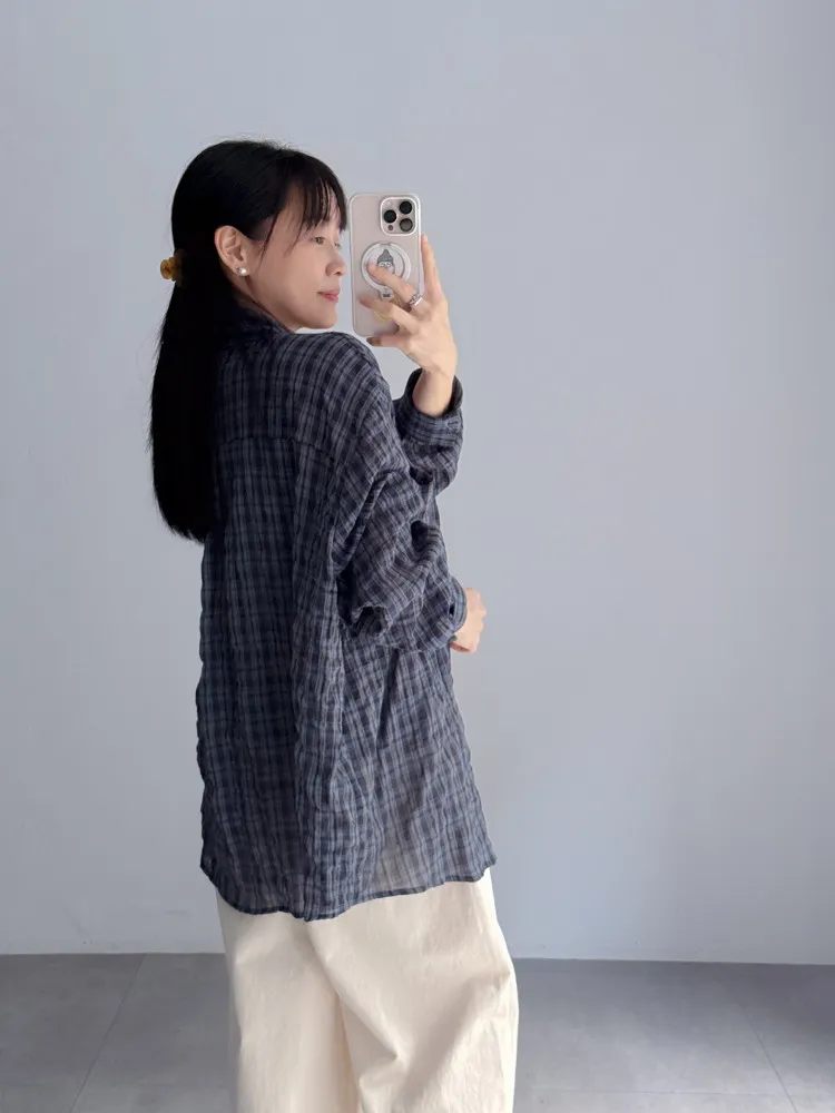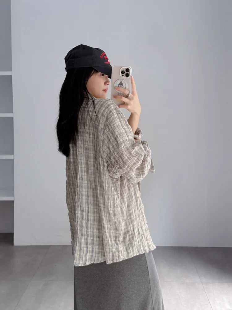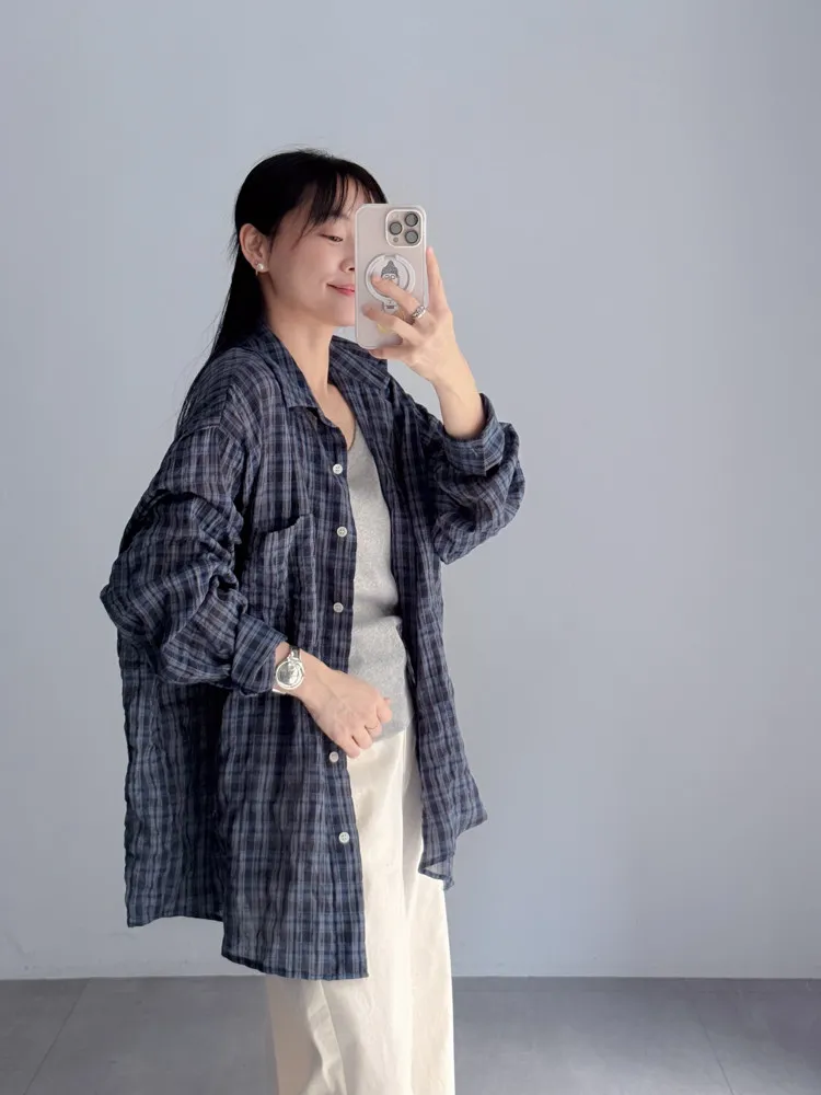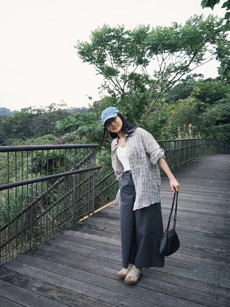 [特點] 落肩剪裁搭配寬身設計,不貼身也更透氣,單口袋造型,棉質格紋布柔軟輕薄。