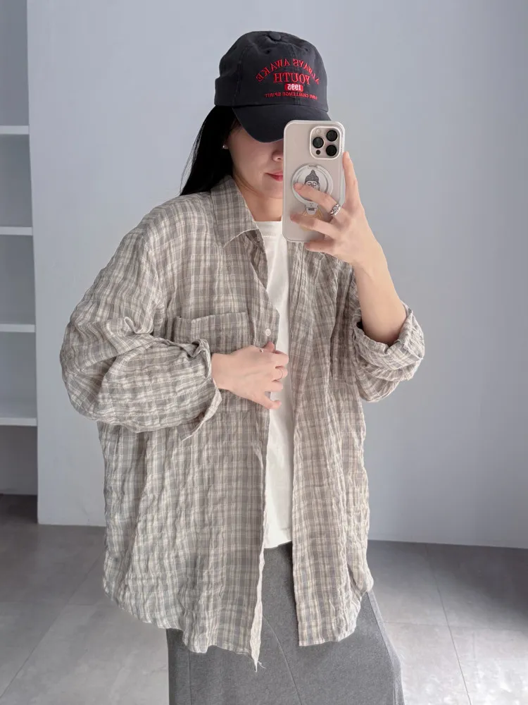 皺皺的格子襯衫