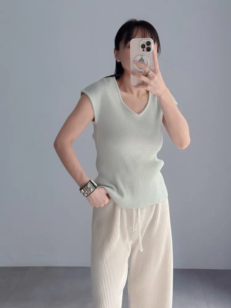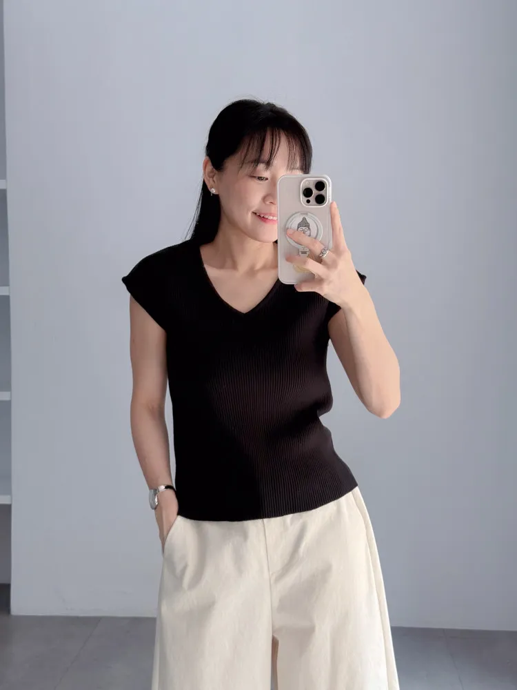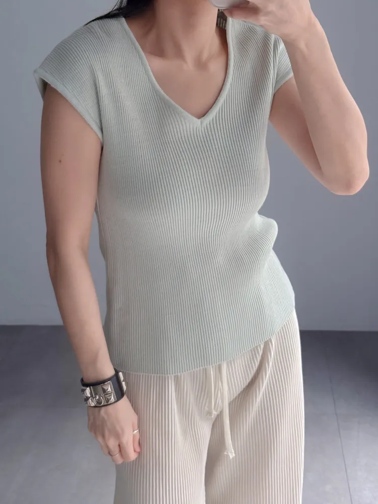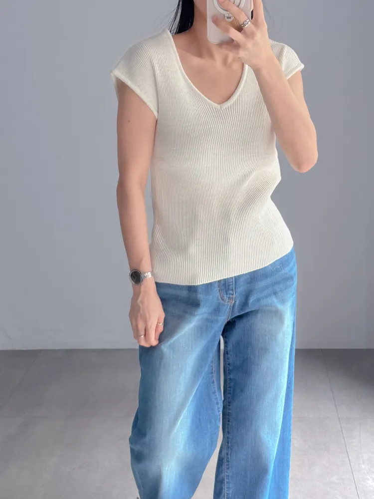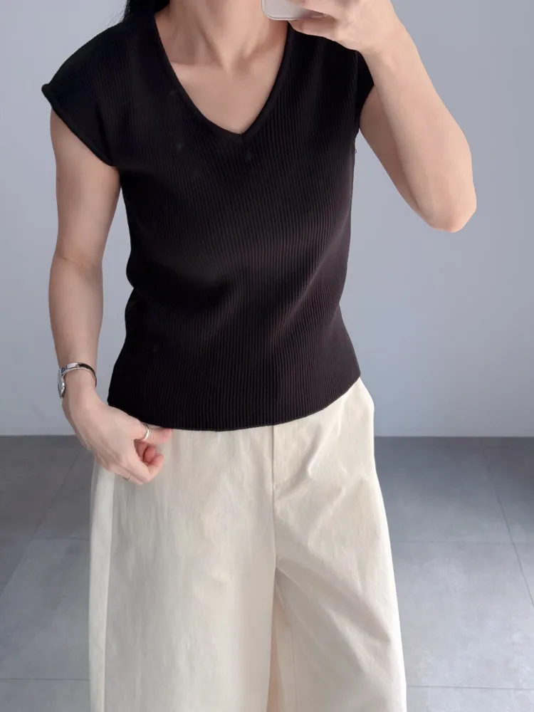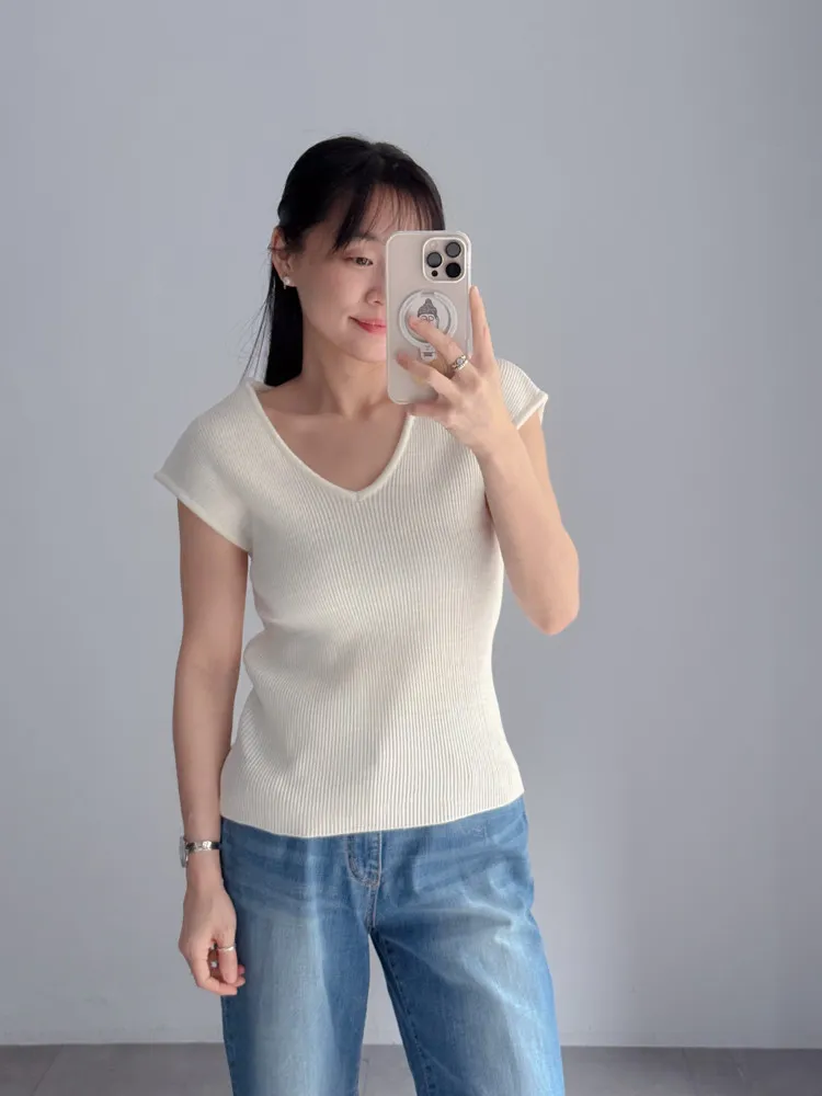 Vline半袖螺紋針織衫