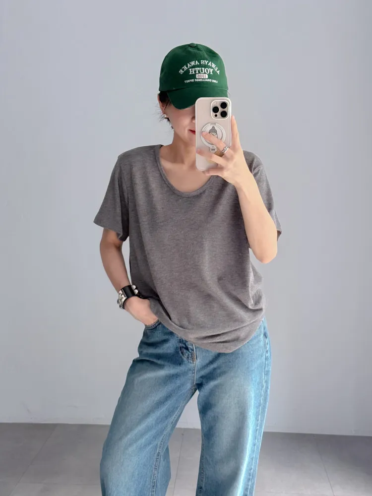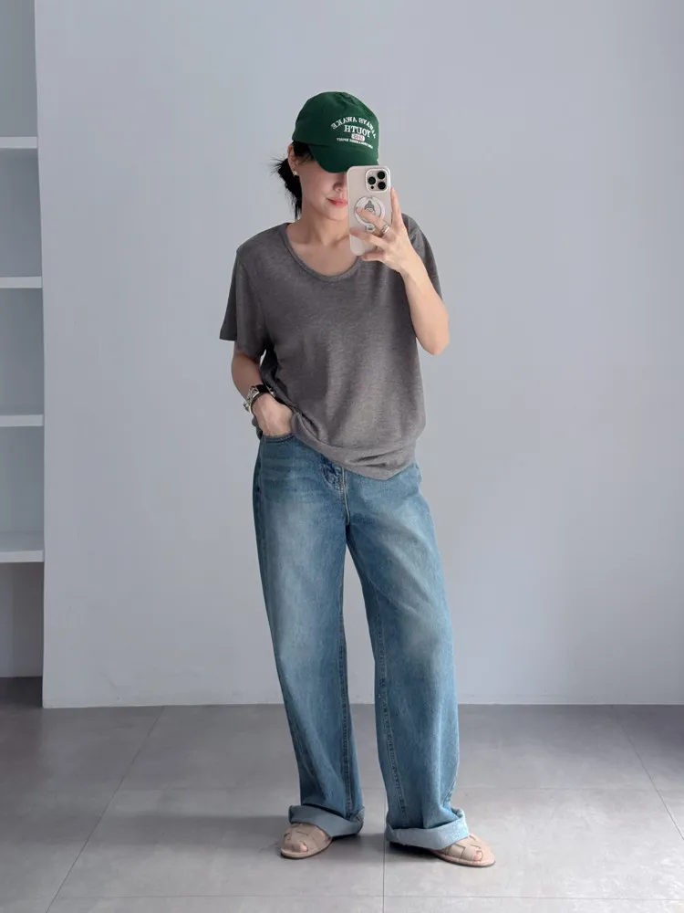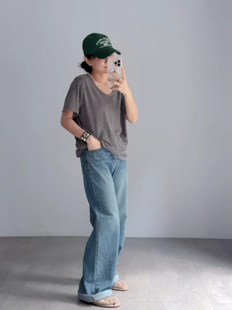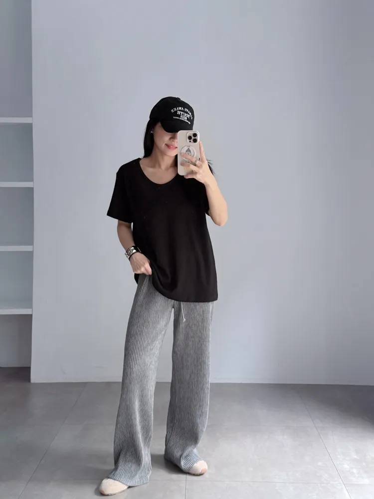 [特點] 微U領設計,竹節棉舒適彈性面料,版型順身。