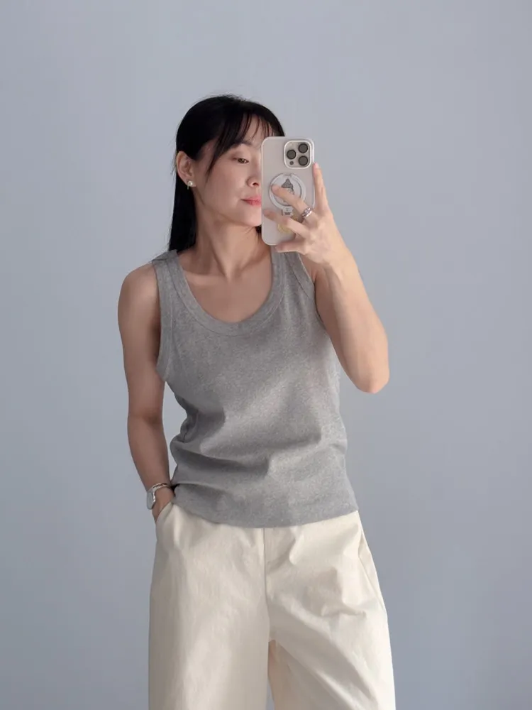 寬框邊U領背心