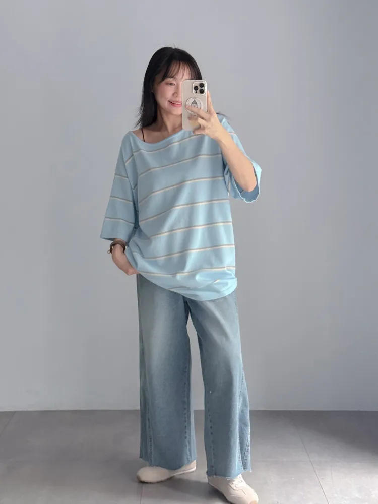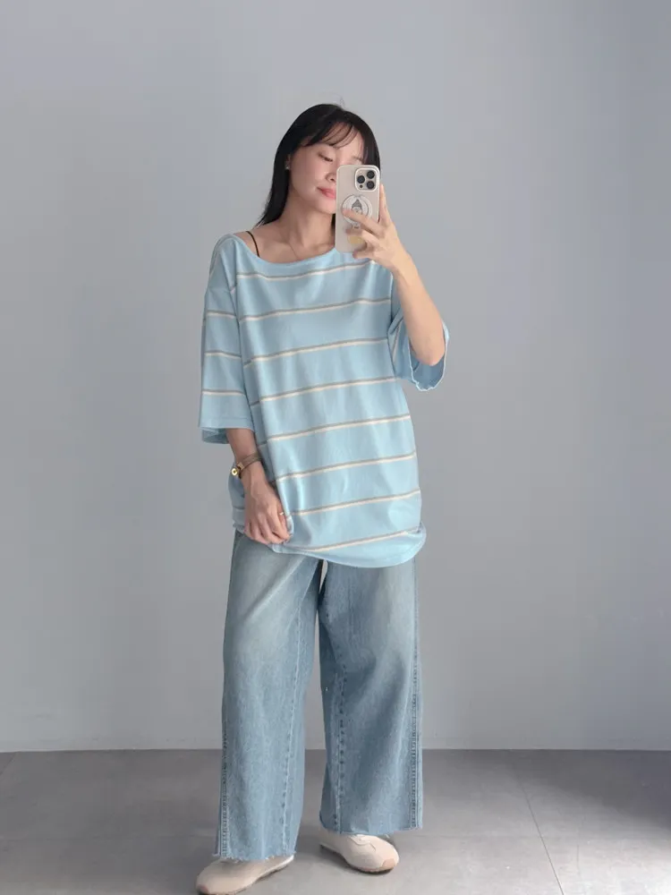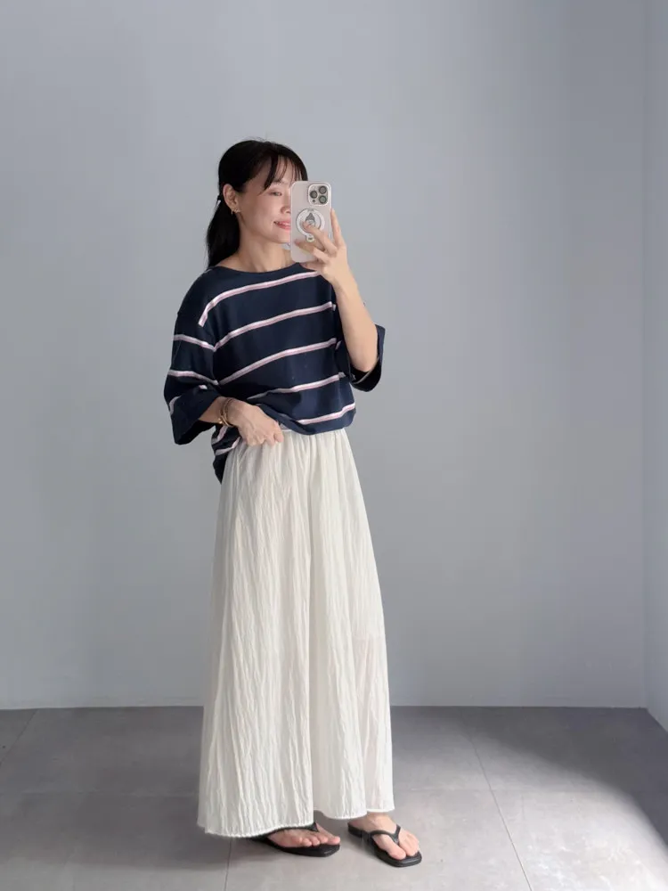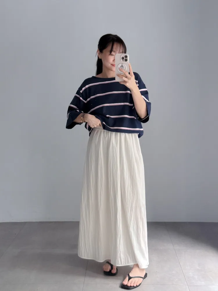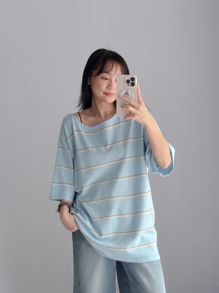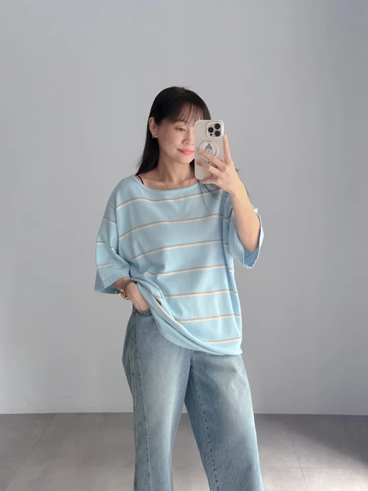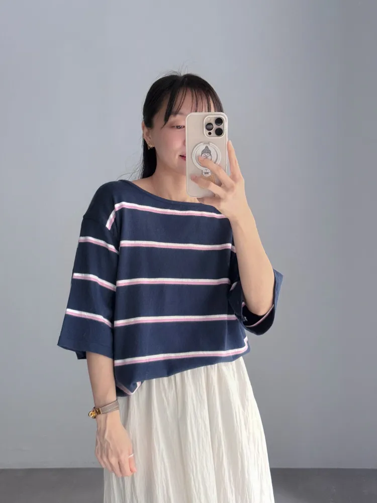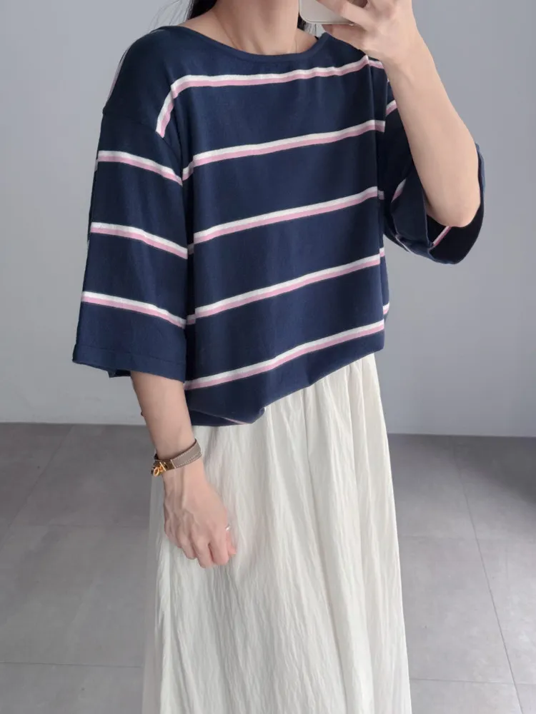 [特點] 軟料針織不扎膚,落肩五分袖設計,順身設計剪裁。