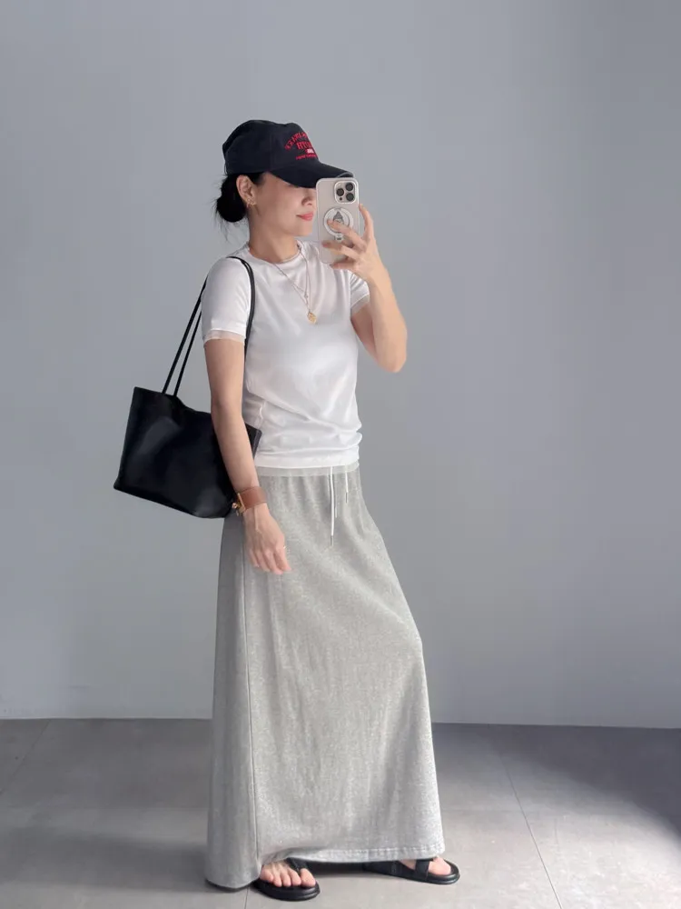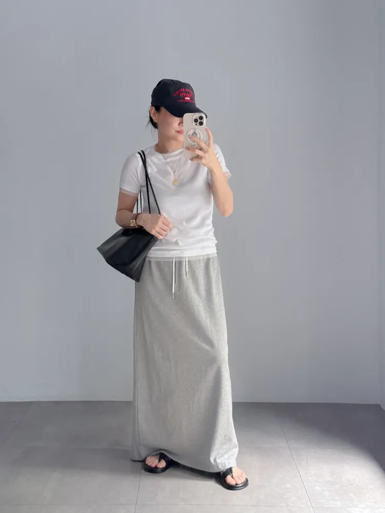 雙層綁帶中長裙