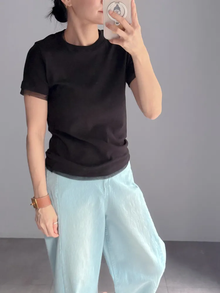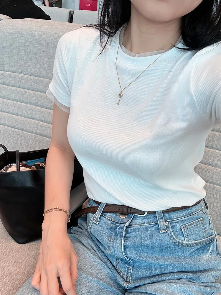 框邊透紗短T
